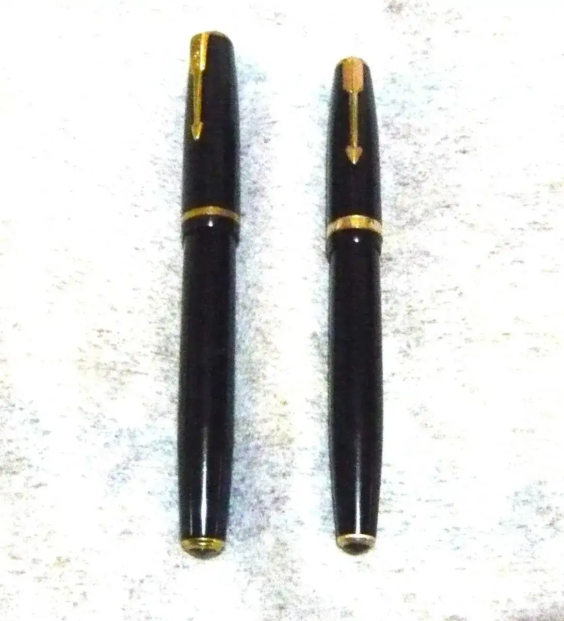 Primero os enseño una comparación de nuestra amiga junto una Parker NS, como veréis casi clónicas, La Plexor mide 138mm de largo y en su punto mas grueso 13mm, la Parker NS 133mm de largo y en su punto mas grueso 12mm de ancho. este parecido es lo que me atrajo de este modelo, como veréis la e pulido y limpiado a conciencia (que falta le hacia)
