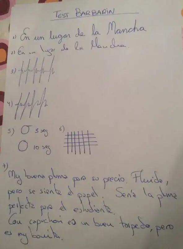 1) escritura infantil, seguida, pero pausada, para ver que tal escribe