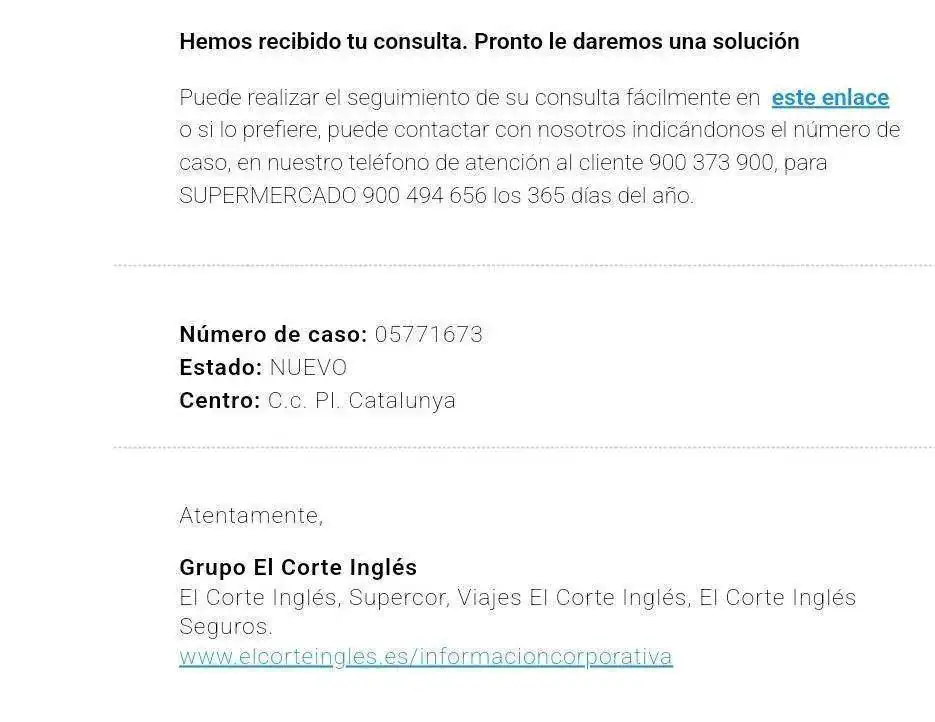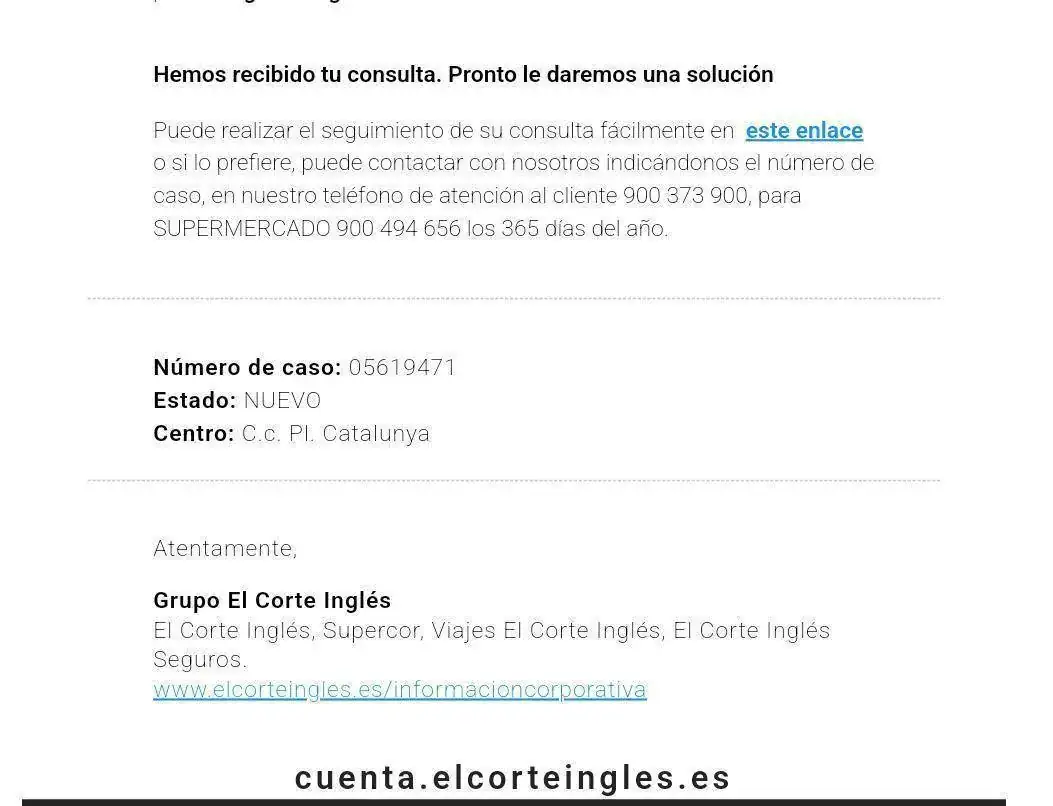 Al no estar de acuerdo una vez más con los criterios de esta empresa y enojado por el largo tiempo de espera y el trato recibido , me comunico con el Corte Inglés y reabren caso para mediar una vez más en este asunto .