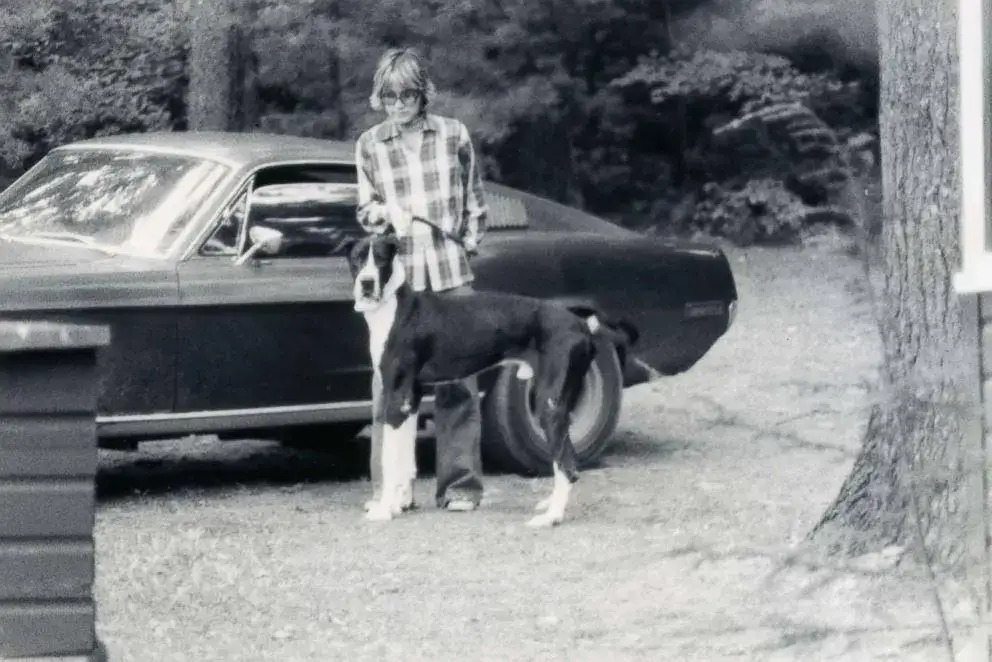 La esposa de Robert (años 70) y su nieta Molly McQueen (2018) con el Mustang de la familia Kierman
