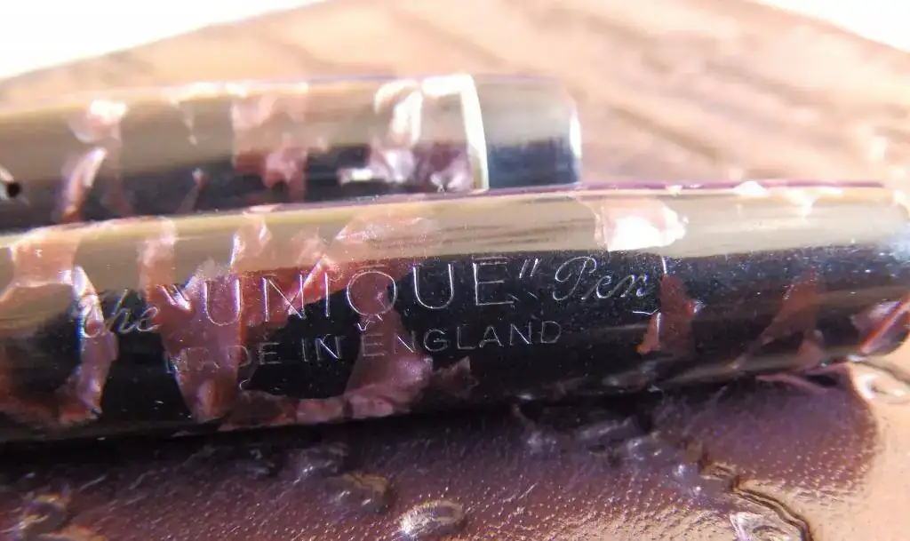 Buenos días compañeros, saco a la venta una pluma inglesa que adquirí allá por el 2000 en la Feria Almoneda de Bilbao. Genuina The "Unique" Pen, una abuelita con más 70 años, en buen estado estético y funcional. No la he usado más que como palillero para comprobar el punto, "f" diría yo, y cargado con agua para limpiar desde que la adquirí. Pluma ligerísima, con plumin de oro 14 CT y dimensiones contenidas (11,5 cm cerrada, 14,5 cm posteada y 10,5 sin capuchón).