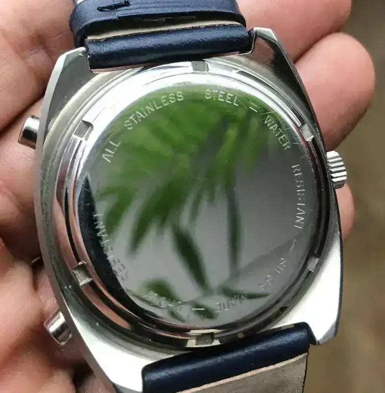 Siento no poder mostrar su interior dado que no tengo llave para abrirlo, pero el calibre ha sido revisado por relojero profesional hace un par de años, y desde entonces no lo ha tocado nadie mas. En su día el relojero me dijo que estaba brillante, y que se notaba que el reloj era NOS.