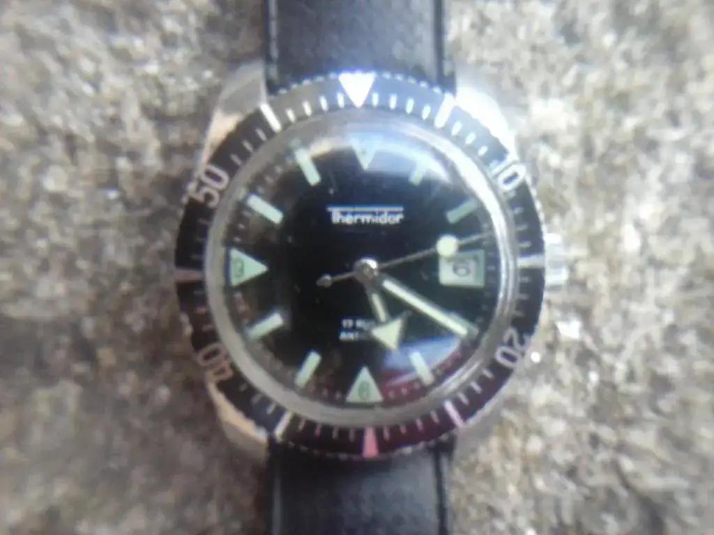 Me desprendo de este Thermidor clásico. En un estado envidiable y marchando perfectamente, su única particularidad es que la correa es pequeña, en mi muñeca de 17 abrocha, pero en los últimos agujeros.