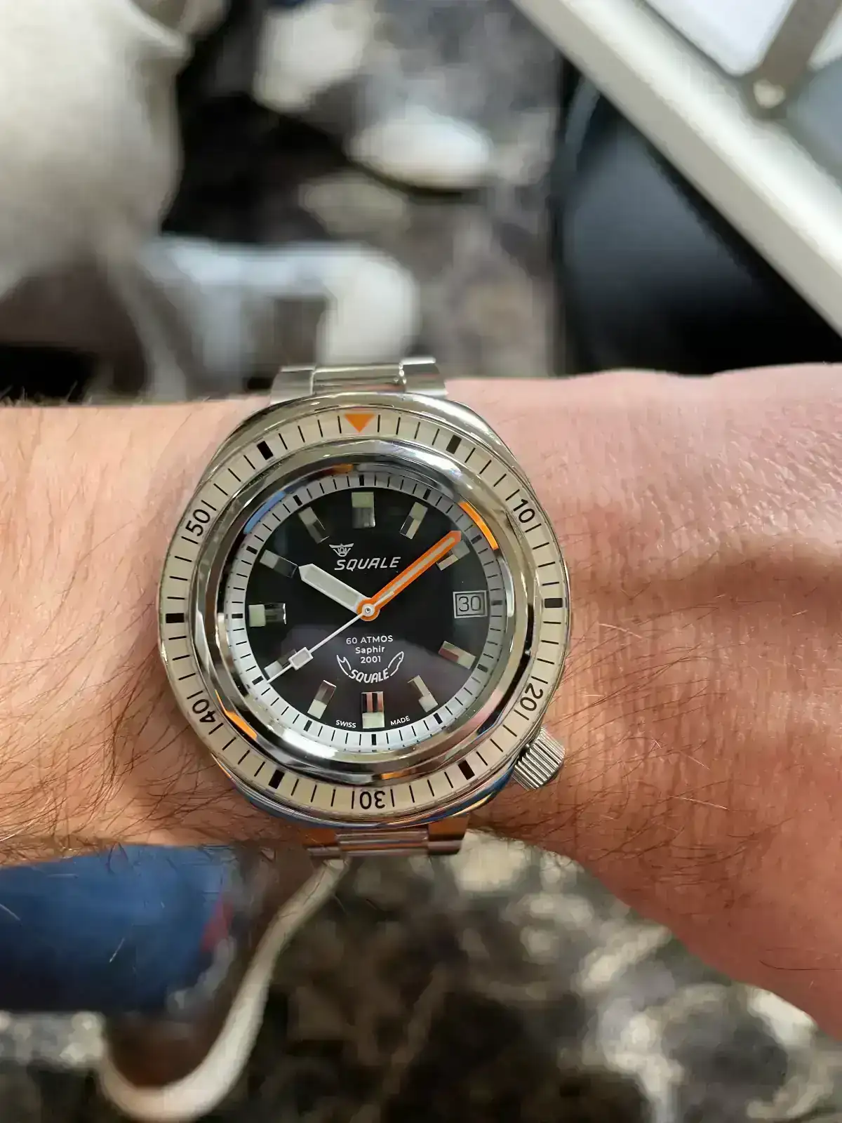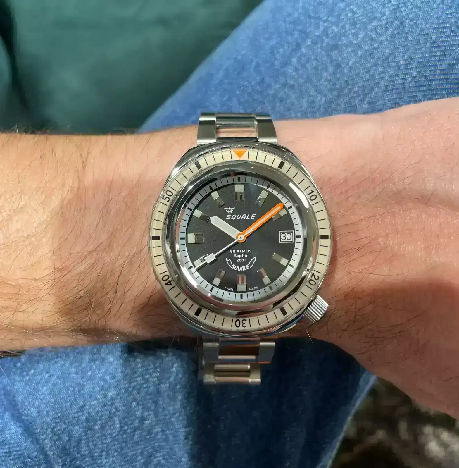 ¿De casualidad no tendrás alguna foto más del Squale 2001? Hace un tiempo que justo ese mismo modelo me hace ojitos. ¿Qué impresión te dio en general? ¿Qué tal de altura? ¿Y qué tal el brazalete? Gracias de antemano.