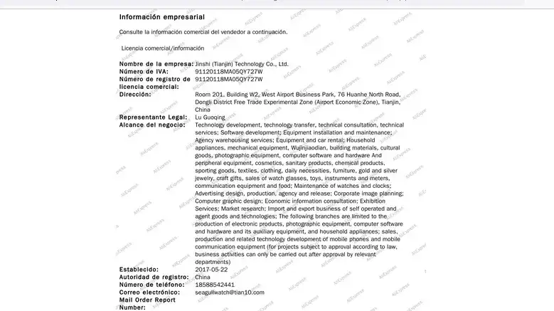 Ya me había percatado de la discrepancia entre el nombre de la empresa y la dirección con las oficiales de Sea-Gull que había encontrado, aunque estaba en la misma "zona", además de su amplísimo “Alcance del negocio”: