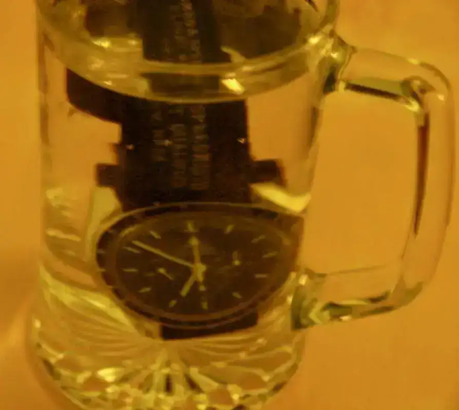 No es un vaso de agua (es un gin tonic) y no es un diver (considerado oficialmente). Pero desde que lo llené de aceite, este F-91 se ha metido en algo más que en un vaso. Y ha bajado más que muchos divers. :D