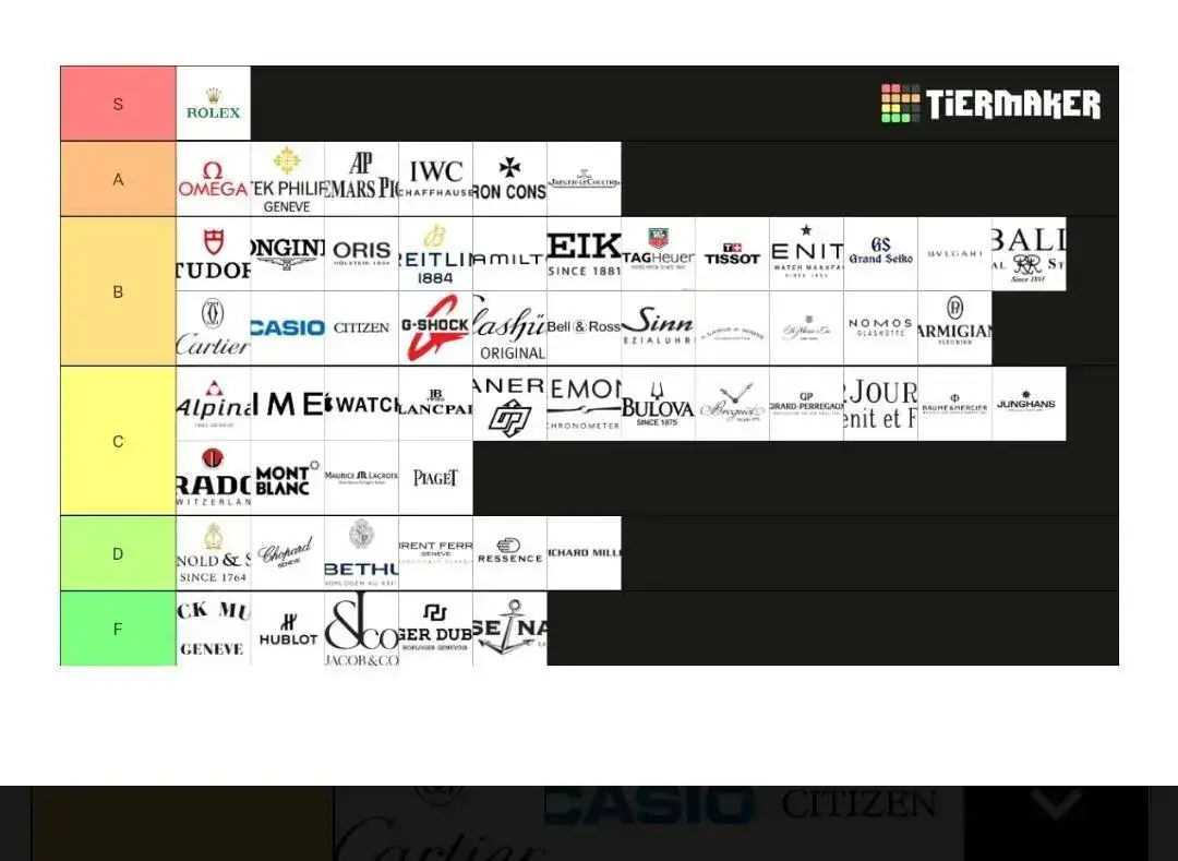 Create a Watch Brands Tier List