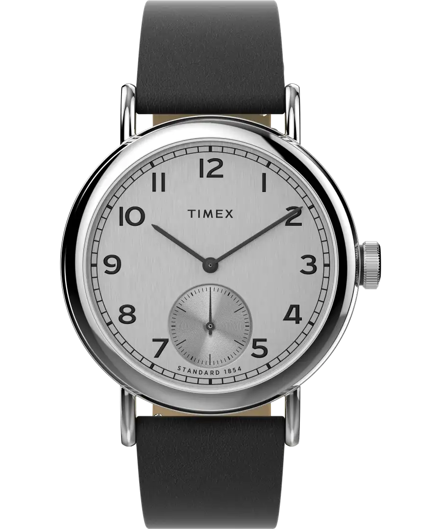 PVP 110€, caja de latón pulido, 40mm, cuarzo, cristal mineral y correa según la describe Timex "correa de cuero fácilmente intercambiable hecha de piel de manzana reutilizada"