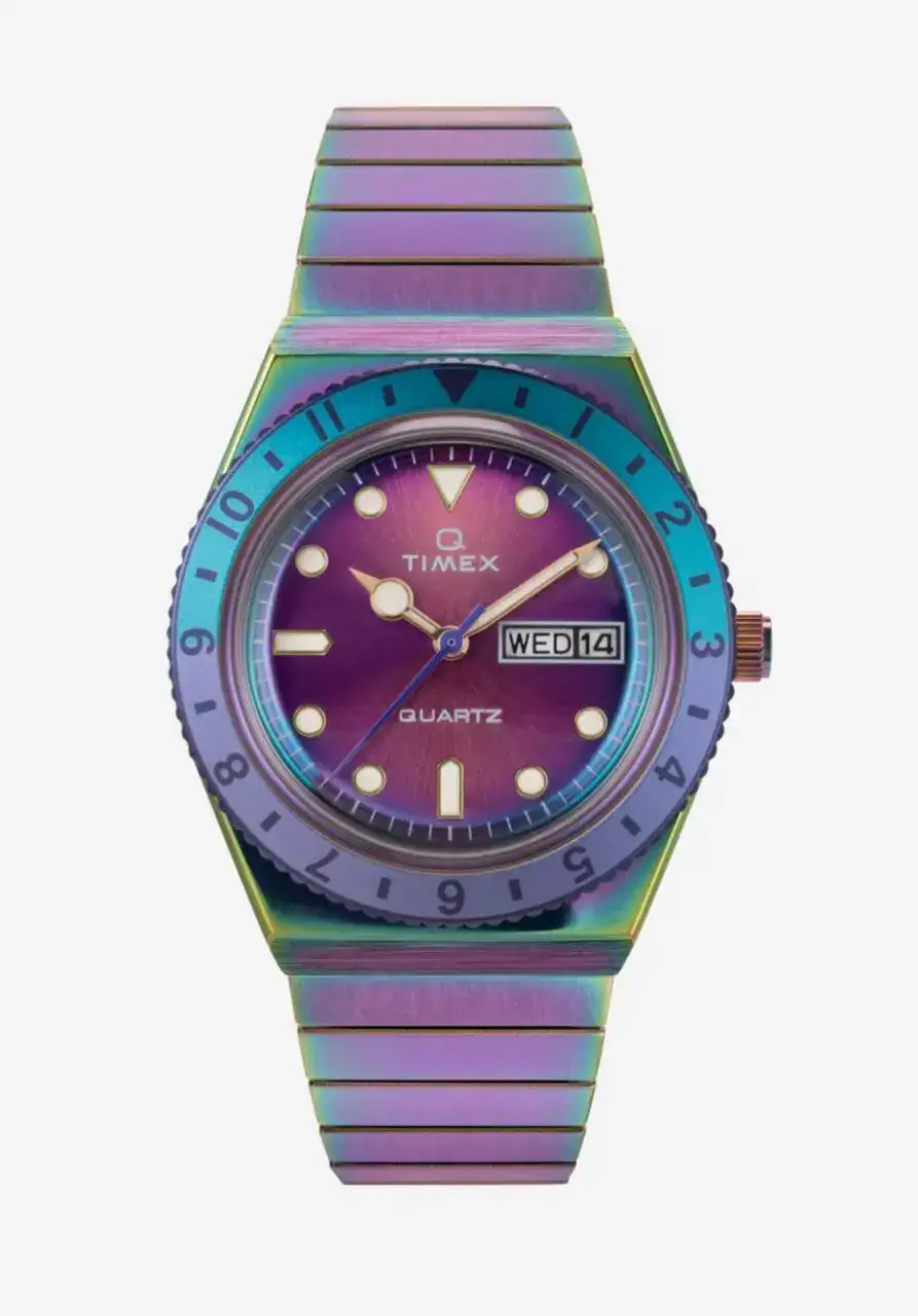 Dive into a world of color and luxe. Our Q Timex transports you to sun-soaked days in faraway destinations with a dial, bezel, and stainless-steel Perfect Fit™ expansion band in a captivating colorway that brightens up all your vacation looks. Other details include all you’d expect from our Q –...