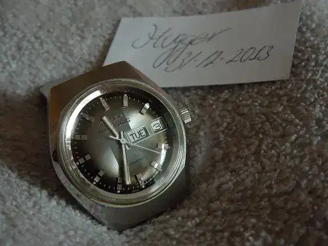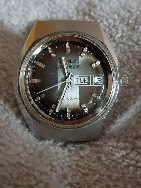 Según me he informado a través de la web,se trata de un Timex con todo original(corona,armis,cristal) y su estado es muy muy bueno exceptuando las marcas del cristal,que por cierto no se si es plexi o no
