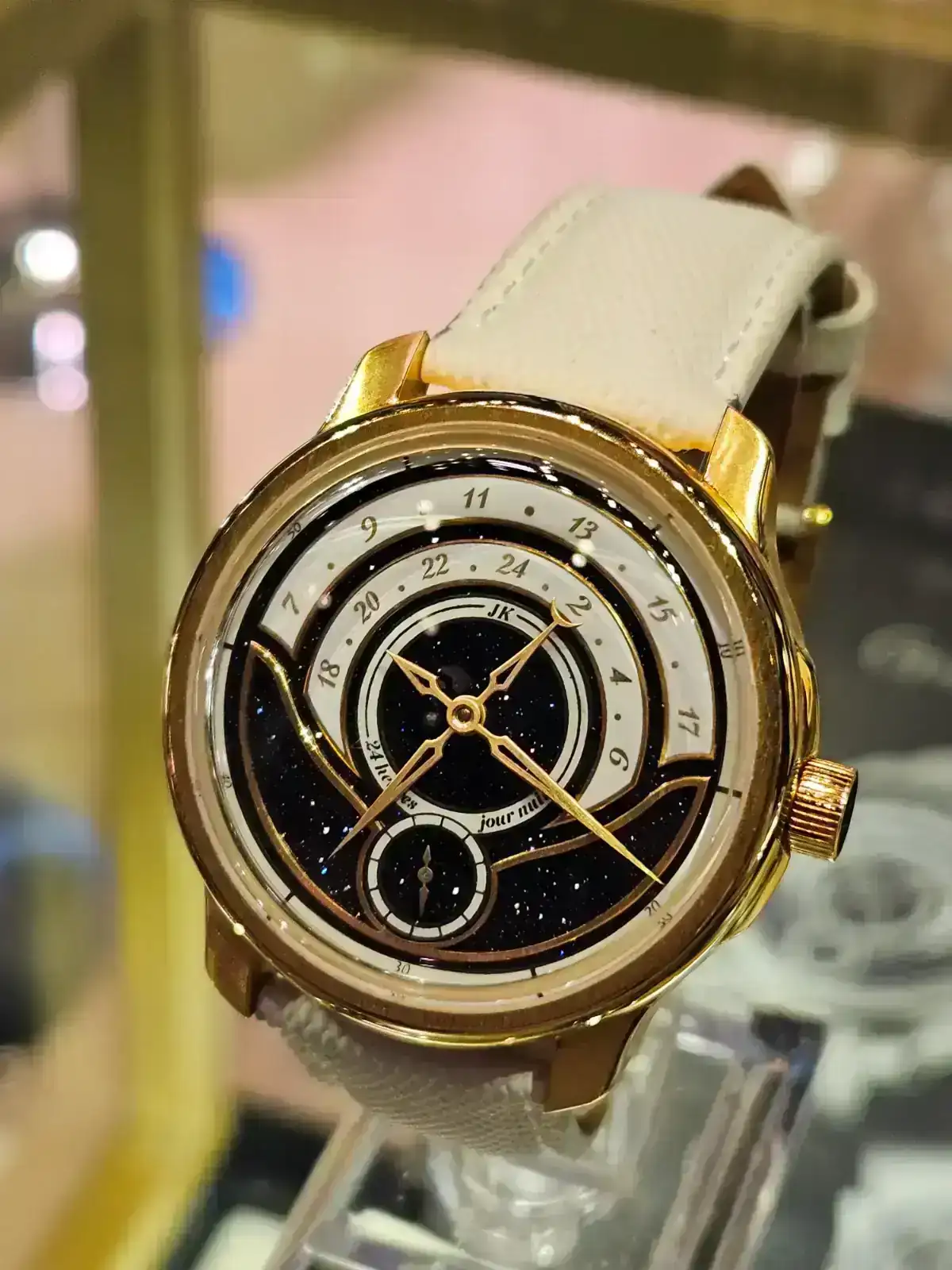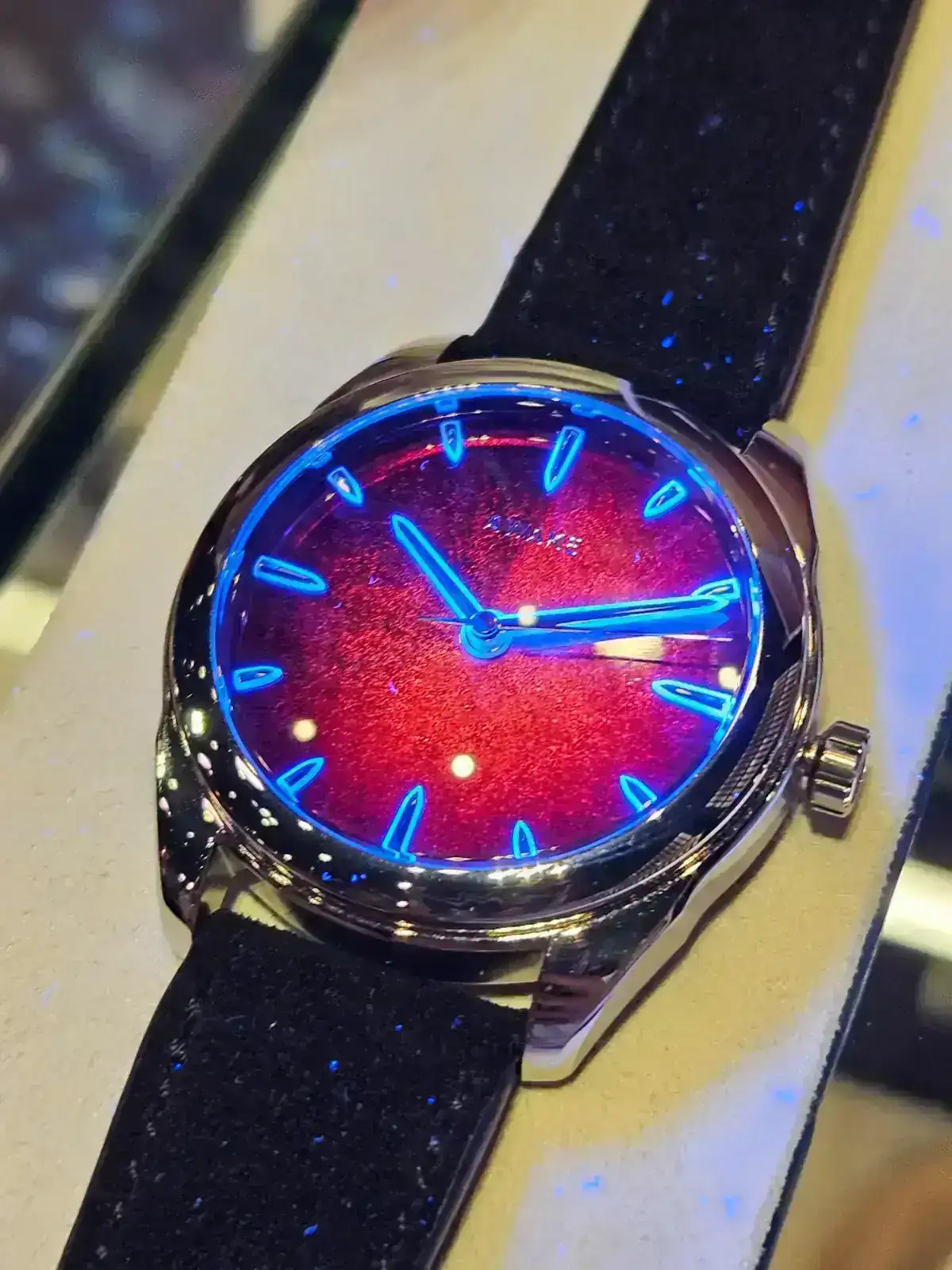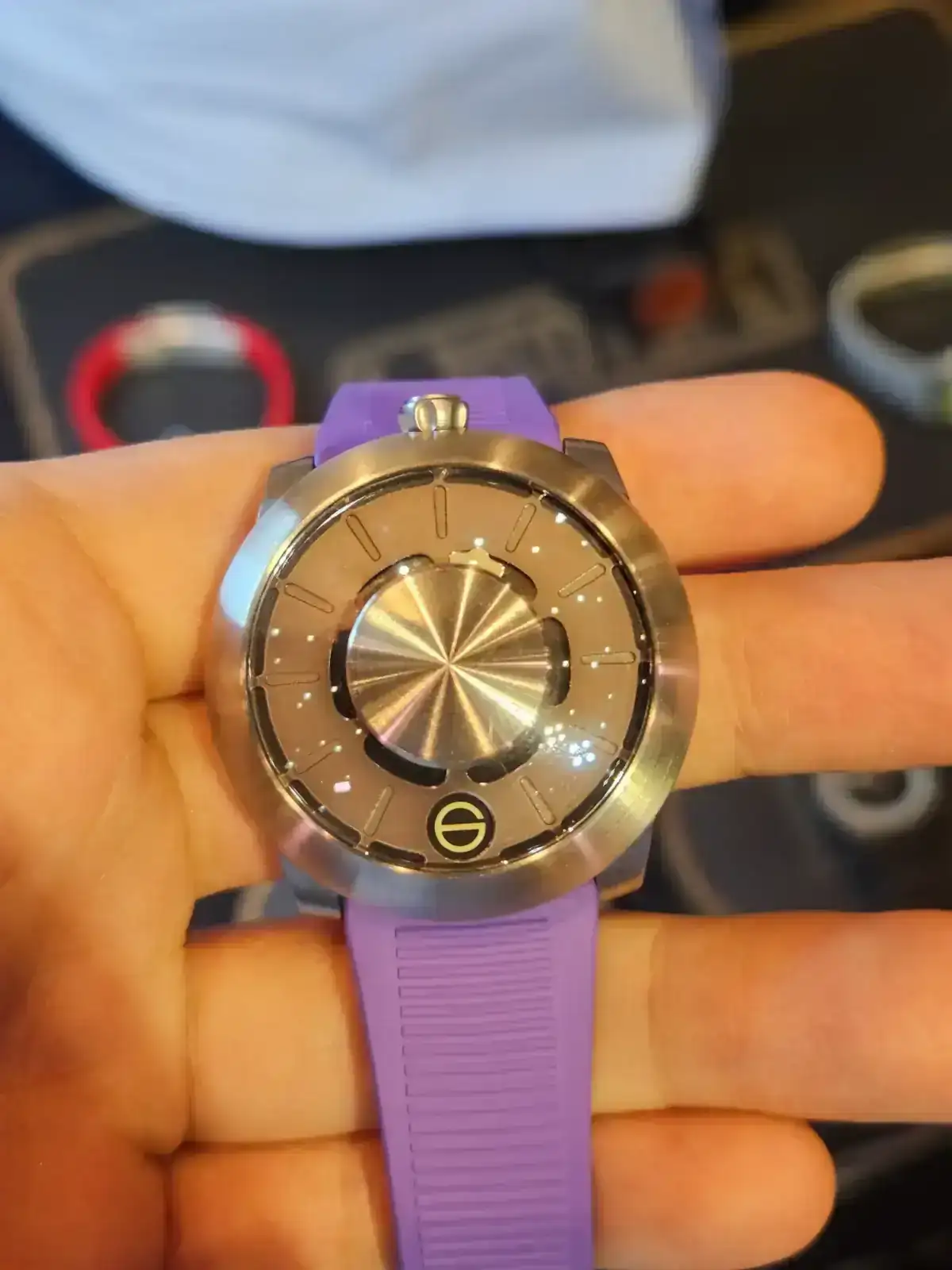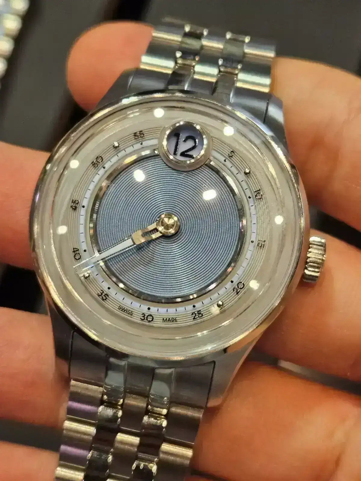 Esta es Isotope, y este primer reloj es un prototipo de su nuevo hora saltante que sale en breve y es muy curioso porque la hora va rotando y no sale todo el rato en el mismo sitio.