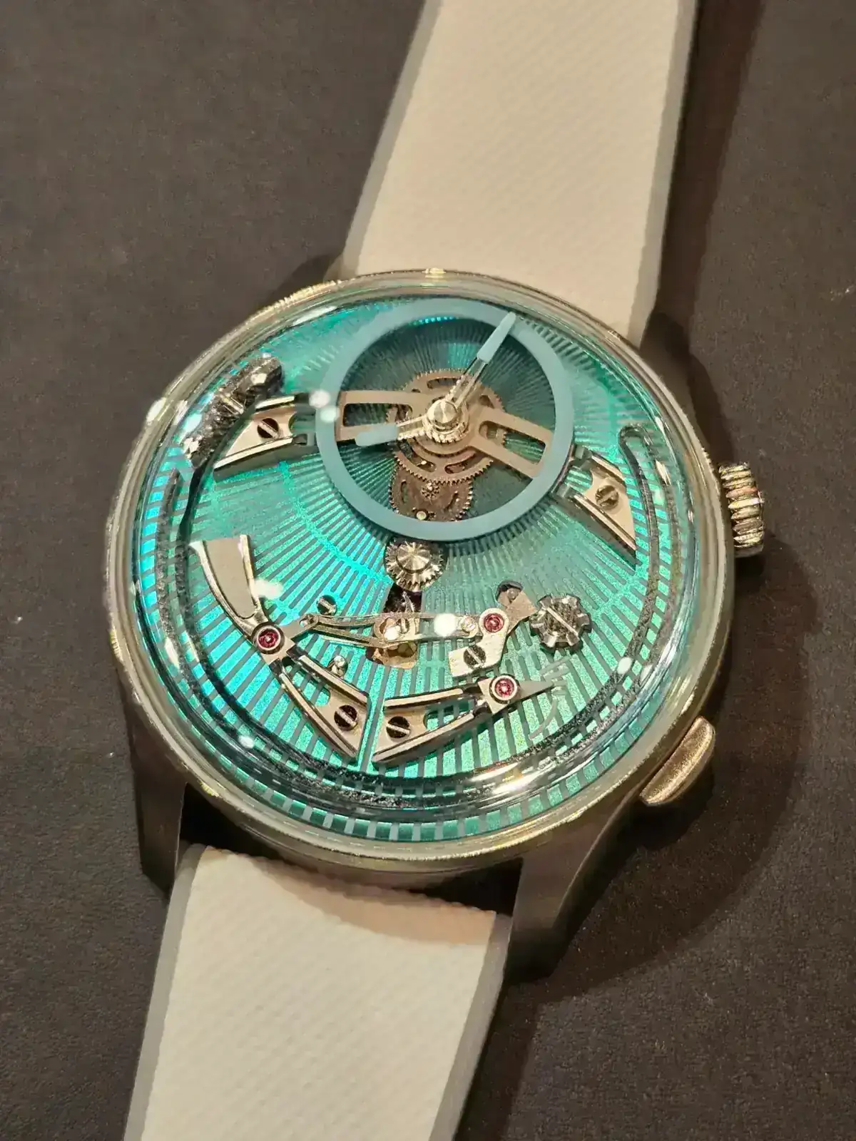 De Venezianico muestro estos dos pero la gracia era unos nuevos con el calibre manufactura con acabados mejorados y guilloché a mano que estan bajo embargo y me dejó sacar fotos pero a condición de no enseñarlas. Lo siento. Acojonantes eso sí