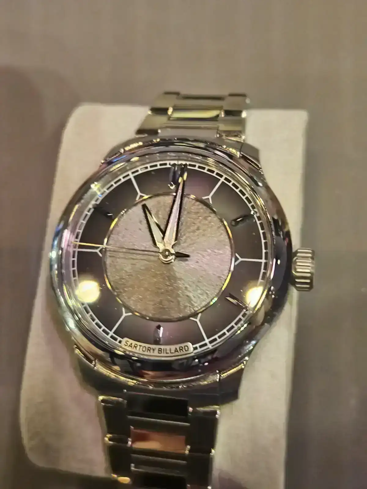 Sartory Billard, me pude probar la caja que llevará el reloj elegante de RE, queda perfecta en muñeca pequeña. Al parecer estan super ilusionados con el proyecto del foro, mostraron un entusiasmo tremendo