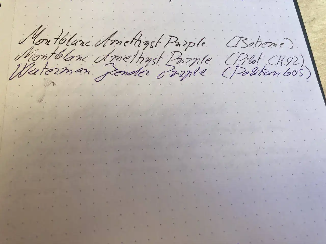 Púrpuras - Nunca he sido fan, pero últimamente me interesan, no sé si el tono lavanda, que lo veo muy claro, pero sí un púrpura oscuro, o un azul oscuro con reflejos púrpuras. La verdad no sé qué color vosotros habéis probado de un púrpura muy oscuro, lo digo para utilizar por ejemplo en sustitución de un azul negro, en un documento más o menos formal, Me resulta interesante un reflejo púrpura. He visto que los compañeros usan por ejemplo Diamine Imperial Purble, o similares. Admito sugerencias.
