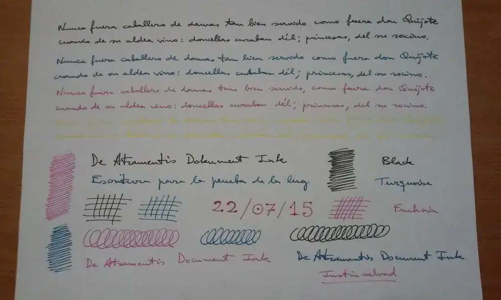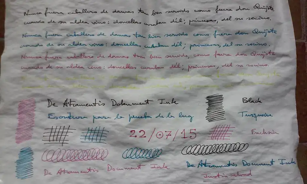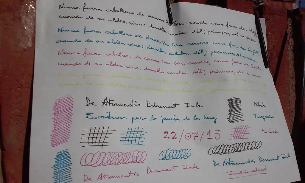 Desde que Papish lo inició en enero me cautivaron las tinta permanentes de De Atramentis. Disfruté como un enano con todas las pruebas de resistencia que realizó Ophrys2 y deseaba poseerlas. Pero el precio de los portes desde Alemania me retenia.
