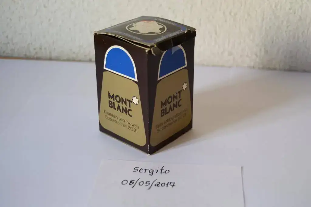 Os vendo este estupendo tintero Montblanc de los año 80 (según he leído en la web). Está como al 75% de capacidad y la tinta, creo que no se ha usado, sino que se ha ido evaporando después de 40 años de ostracismo, huele muy fuerte. Yo no me he atrevido a usarla en ninguna pluma.