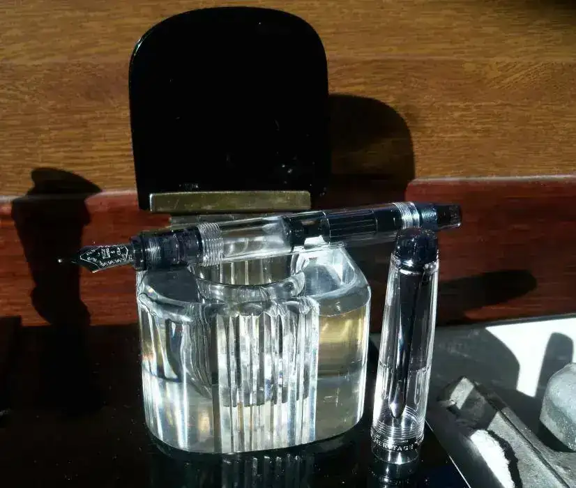 Yo tengo un tintero de cristal Baccarat inglés, manufacturado en Birmingham en el año 1903, con la tapa de plata maciza. Es una preciosidad.