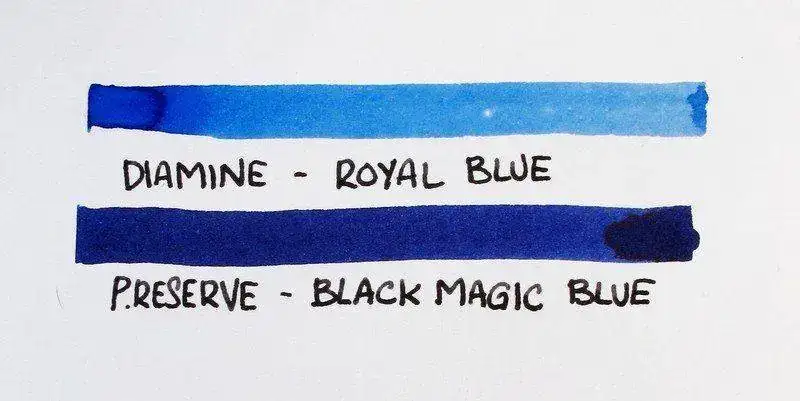 Hay azules que no lo son; P.Reserve - Ebony blue. Muchos azules que tienden a violeta: Lamy, Myosothis, Blue Sky de Caran, Parker blue, Florida blue, Kaweco azul, Delta azul. Azules Cian y azul oscuros.