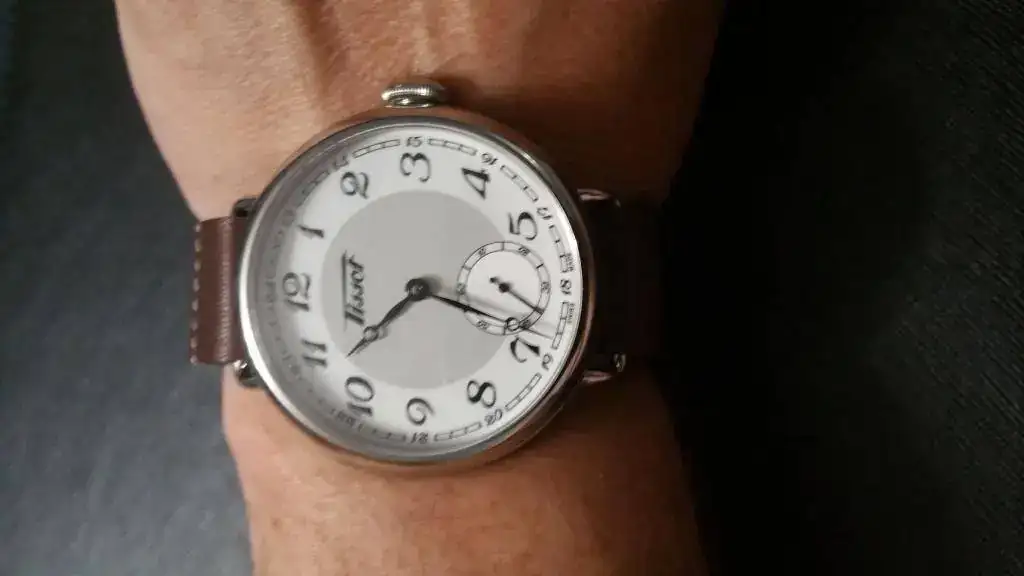 Es un homenaje a los primeros relojes de pulsera, que no eran otra cosa que relojes de bolsillo adaptados y por tanto bastante enormes.