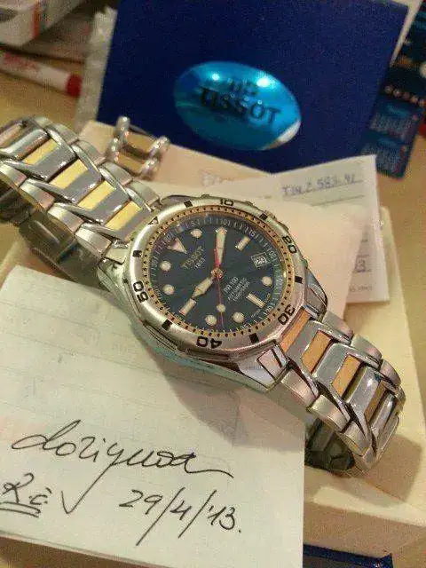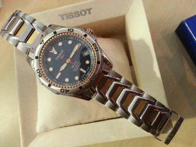 Buenos días, punto y final a mis TISSOT, por ahora, hasta que entre el nuevo; ahora tiene que salir éste, es el último, y merece la pena; un reloj nada fácil de encontrar, con un calibre que va muy bien afinado y protegido, con doble tapadera, calibre suizo ETA2824 que se encuentra en parámetros COSC, sí, hablo de +/- 1 seg/día SUMERGIBLE, perfecto para este verano, water resistant 150 metros/500ft.