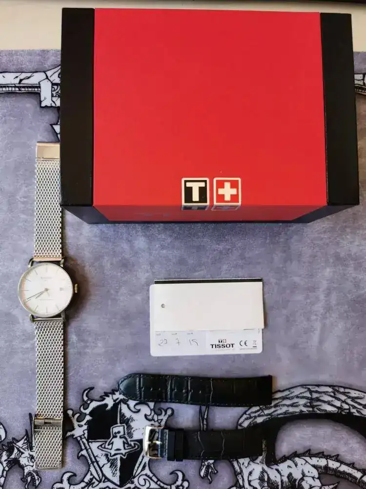 Lo entrego con correa original Tissot negra imitación coco con una única puesta y con una milanesa Geckota que le queda de maravilla (con alguna muy ligera marca en cierre).