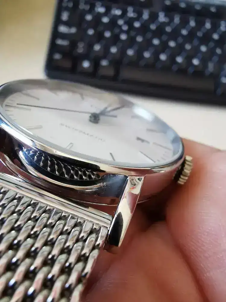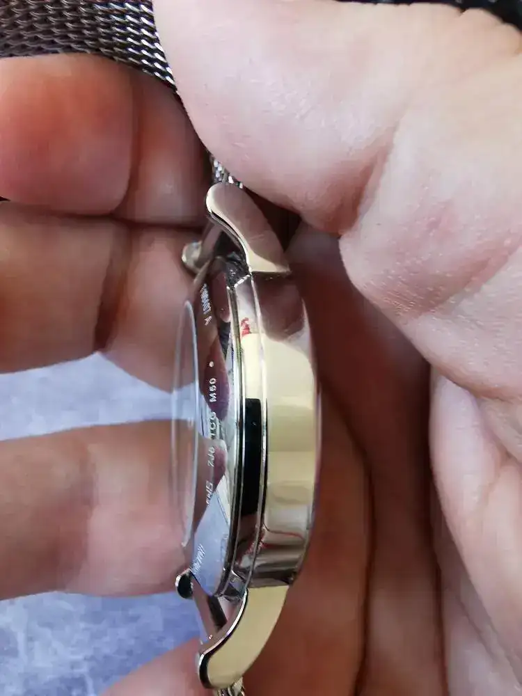 Tiene pocas puestas, así que está en muy buen estado, a destacar las pequeñas marcas en el interior de las asas por cambio de correas y una pequeña marca a las 6. Espero captar correctamente el estado en las fotos. Cristal impoluto, por supuesto.