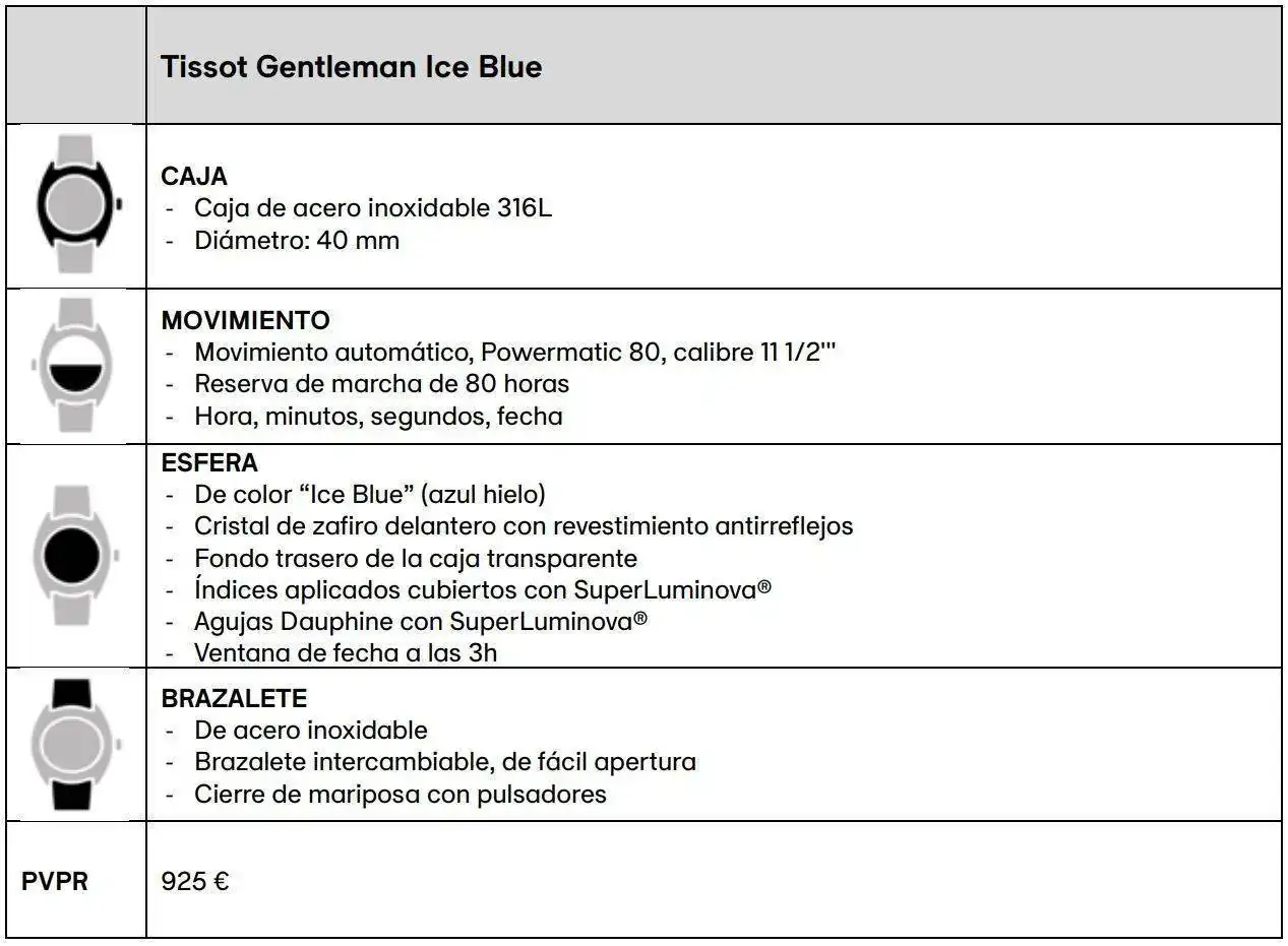 El color me encanta, pero la caja del Gentleman me resulta un poco sosa. Cuestión de gustos. Aunque de verdad se ve muy bien el conjunto.Después del éxito conseguido con la esfera Ice Blue en el PRX, Tissot ha decidido incorporar este tono al nuevo Gentleman.