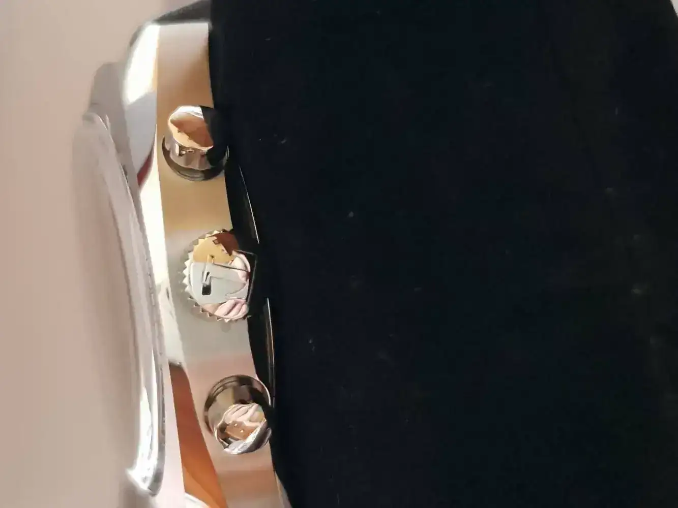 Monta una máquina espectacular, la ETA 7753 con 46 horas de reserva de marcha, Cristal de Zafiro abombado antireflejos que cubre el bisel de taquímetro interior, muy original. Los acabados son de una calidad excepcional y el cierre es tipo mariposa con pulsadores.