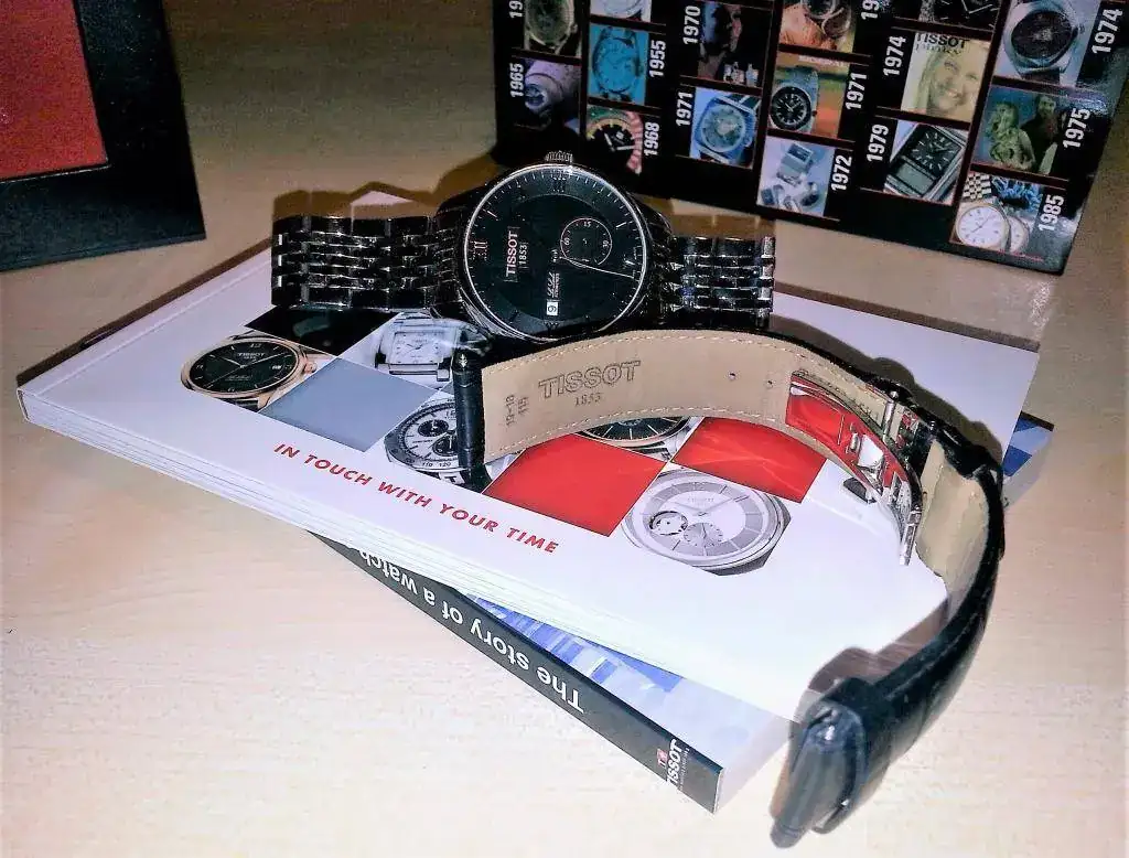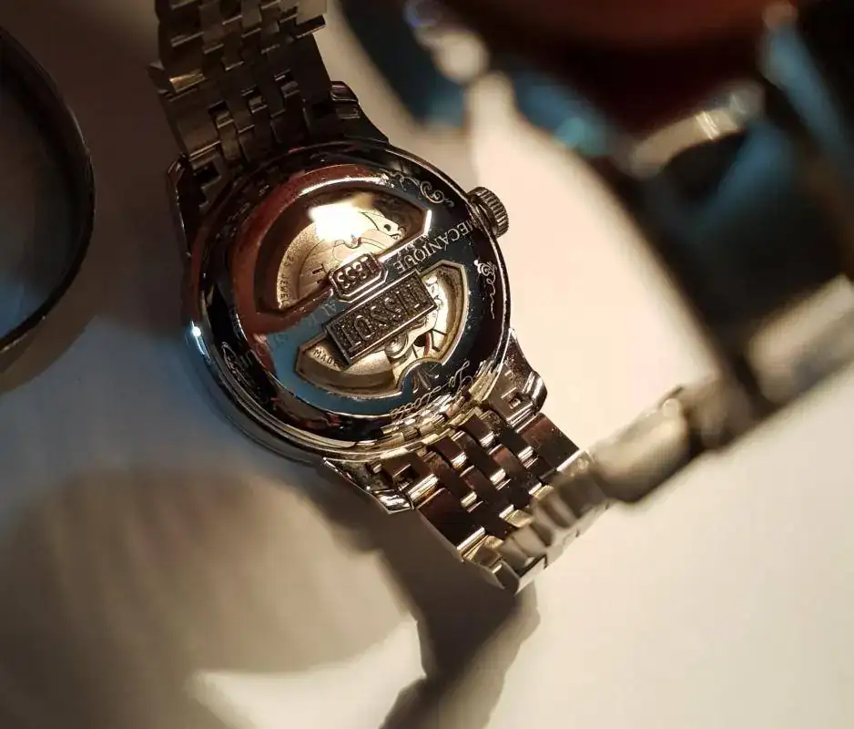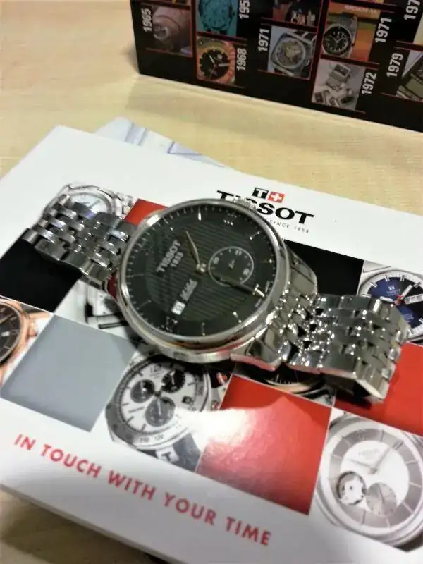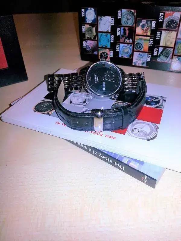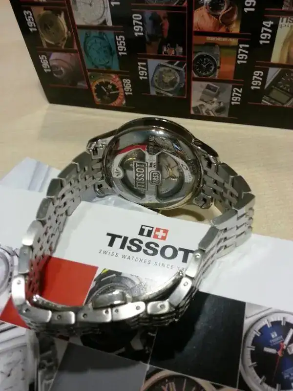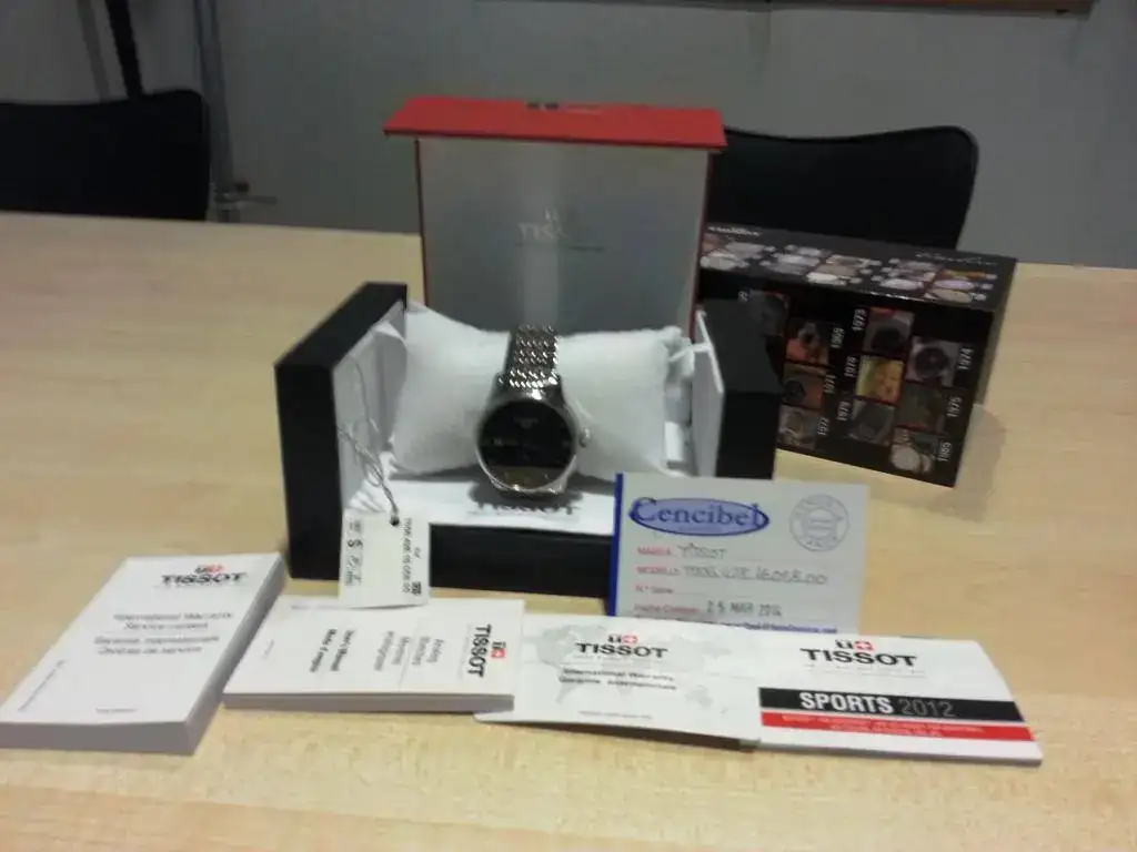 Fue comprado nuevo a un conocido mercante como se ve en alguna foto. Ha tenido muy poco uso, ya que solo me lo ponía algún fin de semana y en alguna reunión de trabajo. Está en buen estado, sin marcas reseñables en el zafiro y en la caja, las típicas rayas y pelillos de uso que un poco de Cape Cod o un ligero pulido, dejarían el reloj como nuevo. El reloj SE VENDE CON LA CORREA original que está al 90%, si además se quiere el armis de las fotos, que es un original Tissot para este modelo en concreto, comprado también por mí en la joyería Tomás Colomer de Barcelona, son 85 € más.