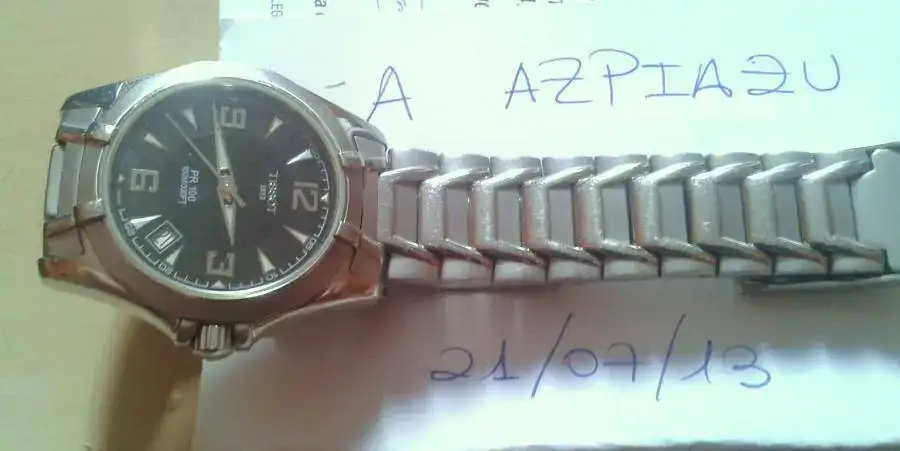 El calibre es un cuarzo etasa suizo,funcionando y con paso rápido de fecha.