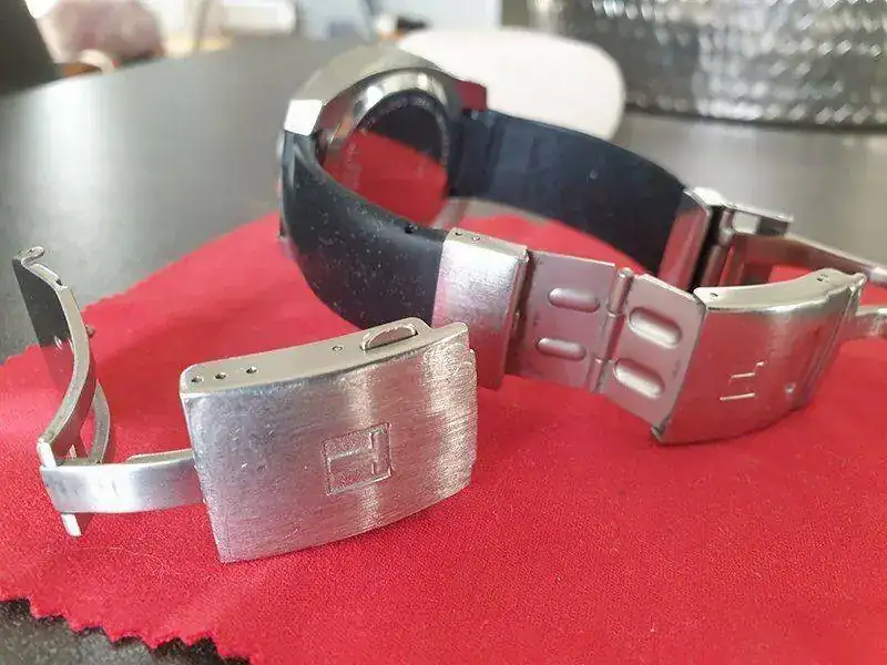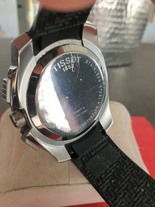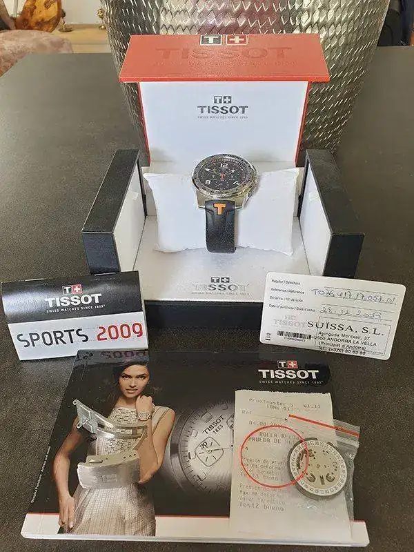 Le cambié el cierre por otro original Tissot con extensión para buceo. La última vez que se sustituyeron la pila no se le realizó la prueba de estanqueidad.
