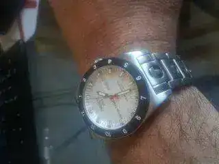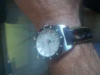 Tissot prs516 automático, cristal zafiro, w.r. 50m, fondo visto, la marcha es muy buena, fondo visto simulando un volante de coche. Tiene mini arañazos en las asas, hay que buscar el angulo y la luz para verlos, pero están, se los hice yo cuando quise ponerle el armis con los pasadores que traia que eran mas grandes que el suyo. El armis tiene algún miniarañazo pero tampoco se ven a primera vista. Creo que con un poco de toallita capecod saldrían sin problemas. El resto del reloj esta perfecto ni picadas ni nada. La correa de piel es una hirsch rally, en buen estado, con deployante de la marca, las costuras son amarillas, aunque tienden a color crema, ya que se las pinte yo con el "rotu" de mi hija, y de origen eran blancas. Caja, instrucciones y tarjeta de garantia 25/4/2009. Fotos con macro para que se vean esos arañazos, mas de lo que son.