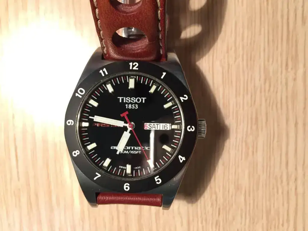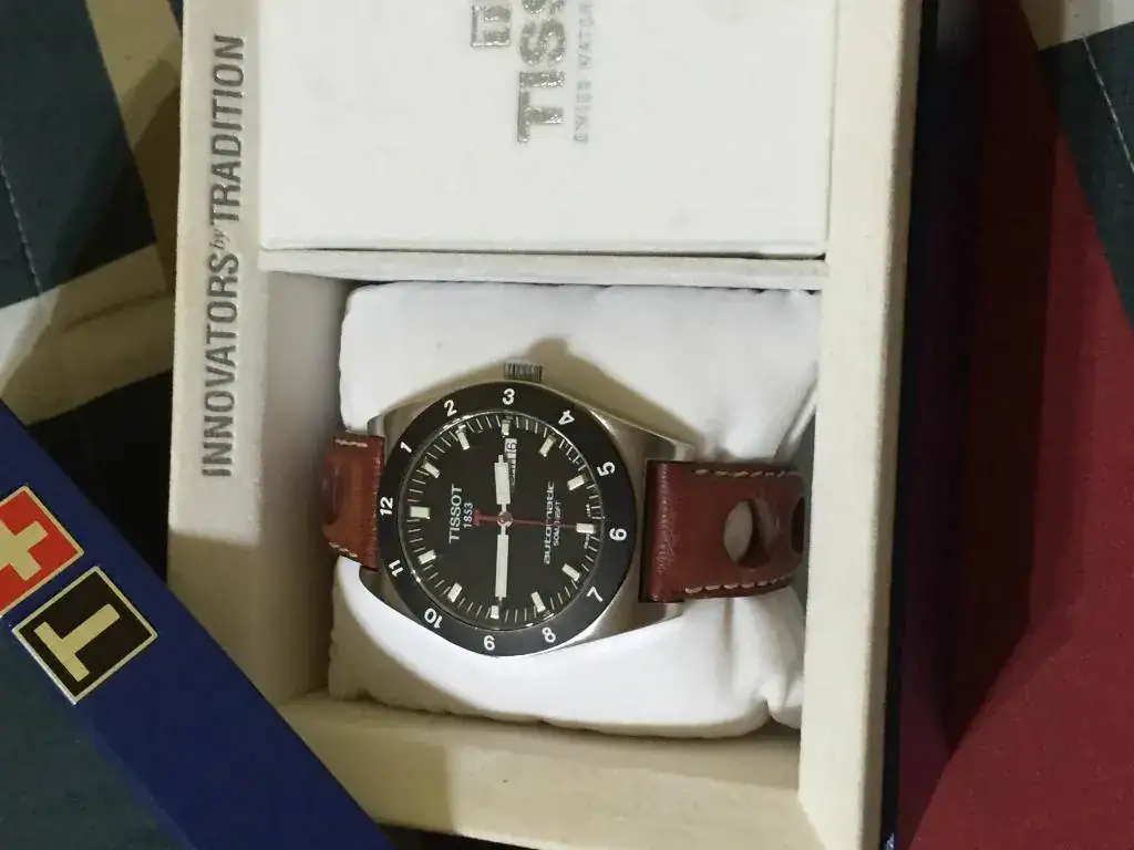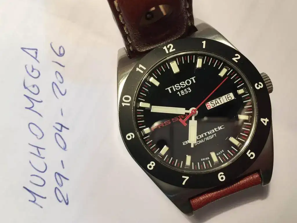 Vendo mi Tissot PRS-516 del año 2005, el reloj está en buen estado y el segundero corre seguido gracias a su maquinaria ETA 2836-2 en plena forma. Lo único destacable son unas pequeñas marcas en el bisel entre las 10 y las 12 muy difíciles de ver al natural ya que el bisel es mate y tambien los inevitables pelos en el brillo a espejo. Indicar que en la foto del nick a la una parece que el cristal tiene un arañazo, pero en realidad es un reflejo. La correa no es la original, pero es de muy buena calidad y muy parecida a la de origen.