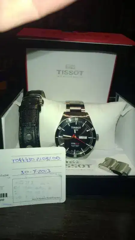 Vendo Tissot PRS 516 automático. Comprado en julio de 2013, por lo que tiene garantía en vigor hasta julio de 2015. El reloj se entrega completo (caja, libros, tarjetas, eslabones sobrantes...) y lleva incluida una correa de cuero negro perforada original. El estado del reloj es muy bueno. Tan solo presenta unas pequeñas marquitas que se aprecian en una de las fotografías. Por lo demás, el estado del reloj es muy bueno.