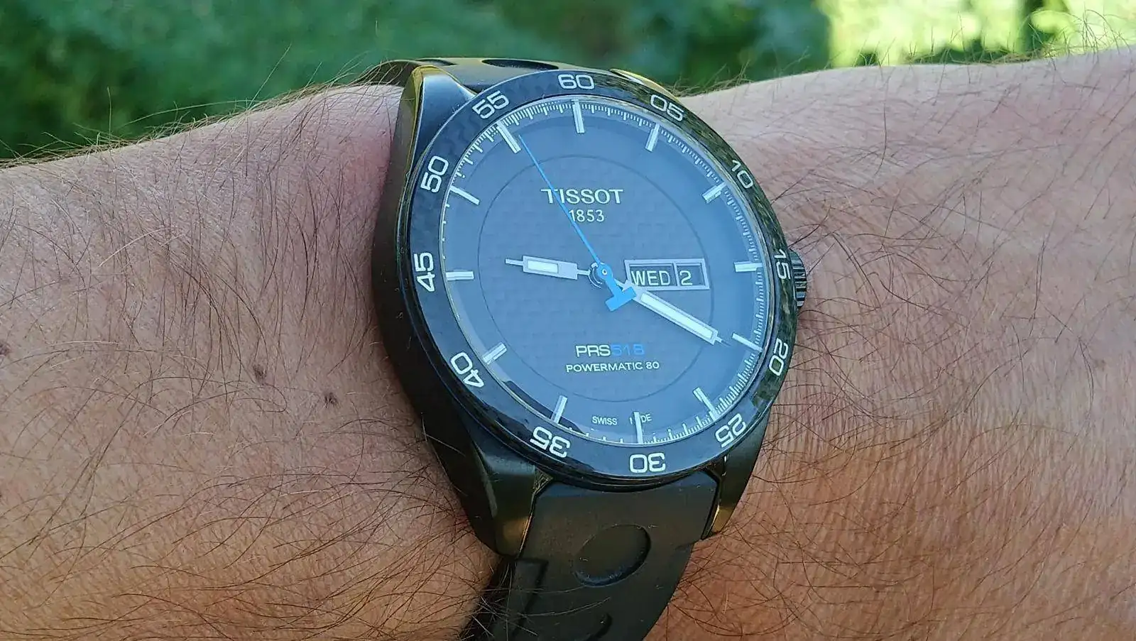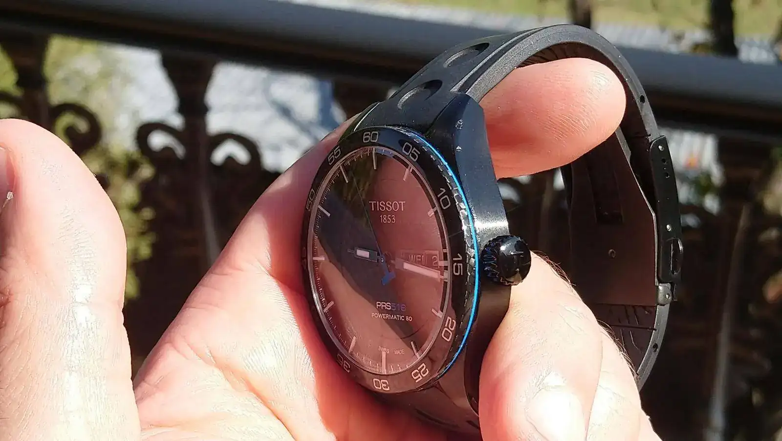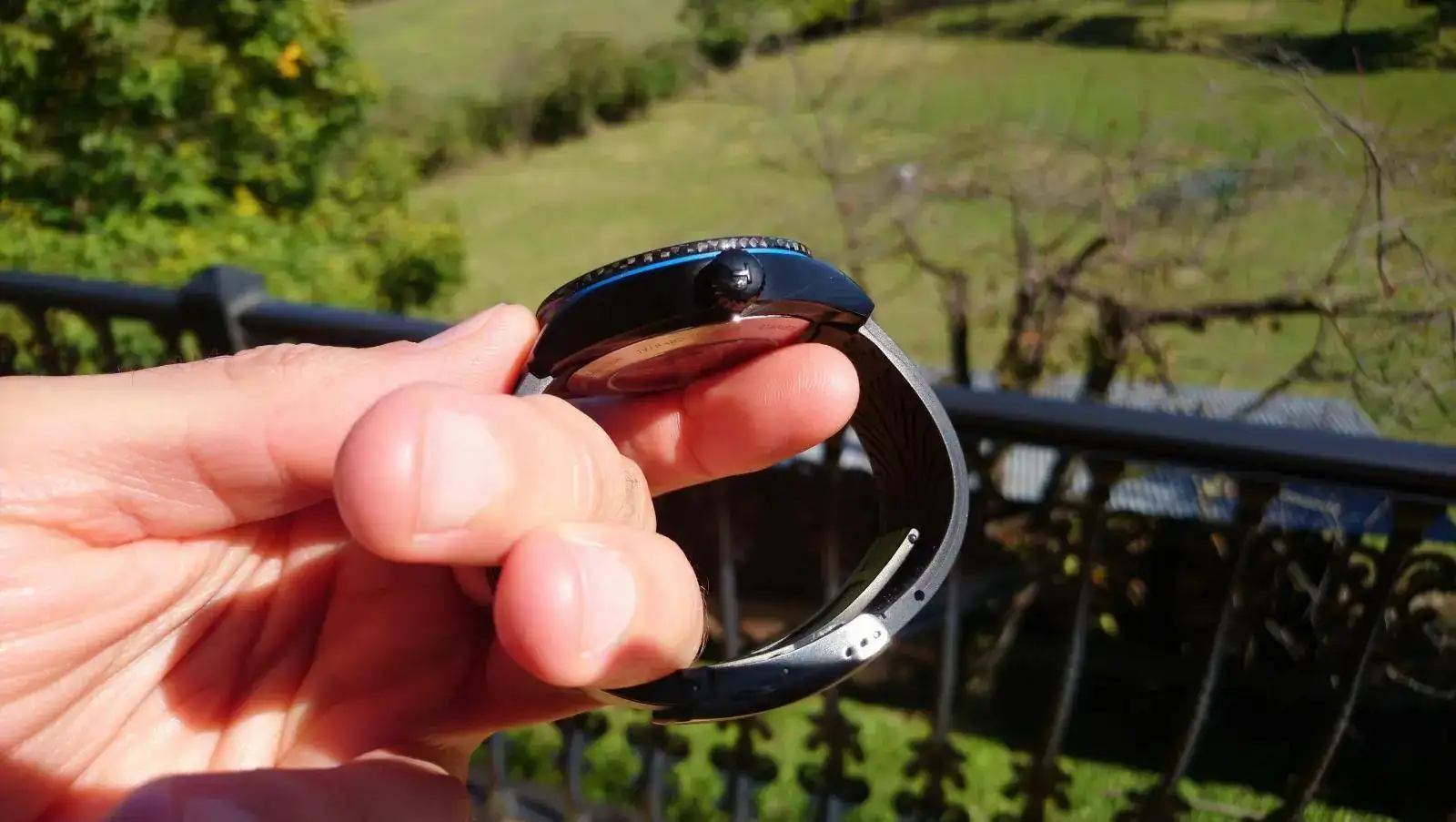 Decir que en el asa superior izq presenta 2 marcas que con el reloj puesto ni se aprecian (ver fotos) y que el caucho está cortado pra muñecas de 17,5cm máximo.