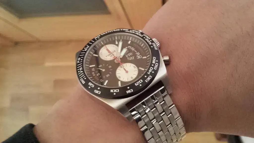 Pongo a la venta este Tissot, lo tengo hace 5 meses pero no ha sido estrenado, descatalogado, en vivo gana muy mucho y regalo armis usado adquirido en una web de subastas muy conocida, (al armis le vendría bien un pulido y es valido para muñecas hasta 17,5 cm) el reloj fué comprado en CO, fué un regalo, pero tengo otros similares, aceptaría cambio por Suizo auto, záfiro sin chrono, mas diferencia, a ser posible pr516 sin chrono, o similar linea Racing o cualquier modelo con ETA maquinaría vista, no diver ni vintage.