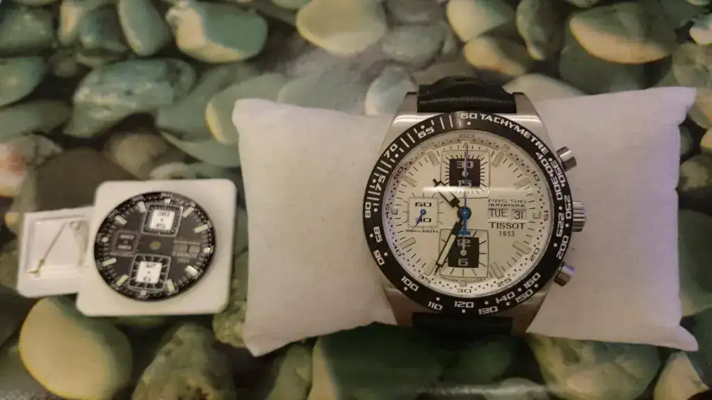 Hola a todos , bueno pues despues de regalarme un capricho inesperado ( un Fortis Stratoliner Limited Edition escalofriante!!! , ya hare una presentacion!! ) vuelvo a hacer limpia en la caja , esta vez se trata de mi primer reloj serio que tuve , un Tissot PRS516 Crono , con la fiable y duradera Valjoux 7750 , el reloj es del año 2008 , pero esta impoluto , esto es debido a que hace menos de un año , le sustitui el bisel y le cambie la esfera y agujas , le puse la esfera blanca con agujas azules pero OJO!! aun poseo la esfera negra de carbono y sus agujas y como las letras del bisel son blancas se pueden conjuntar , asique aqui se compran dos relojes no uno jejejeje , lo dicho paso revision completa,sustitucion de juntas,bisel,esfera,agujas.....las letras traseras negras que suelen borrarse estan impolutas....vamos un reloj de 9,9-10,la venta solo tiene un objetivo y una causa ....reducir el dolor de pagar el nuevo Fortis ( y ya tengo 3 esta marca me va a matar jejejeje ) por lo que nada de cambio por favor ni piezas como parte de pago , como digo el reloj va completo de todo , su armis original nuevo con todos sus eslabones sobrantes , una correa tipo rally con uso pero mucha vida por delante y otra correa del maestro Jacobo pero esta aunque esta nueva se me hizo a medida y solo le valdria a alguien que tubiera una muñeca de 16,5 , caja , garantia caducada , la esfera y agujas de recambio....todo todo todo , para todo el conjunto pongo un precio de 700€ envio incluido a la peninsula o entrega en mano en Madrid , cualquier pregunta por MP o a mi mail sdelamo83@gmail . c o m ahora dejo la ficha un saludo y felices reyes!!!