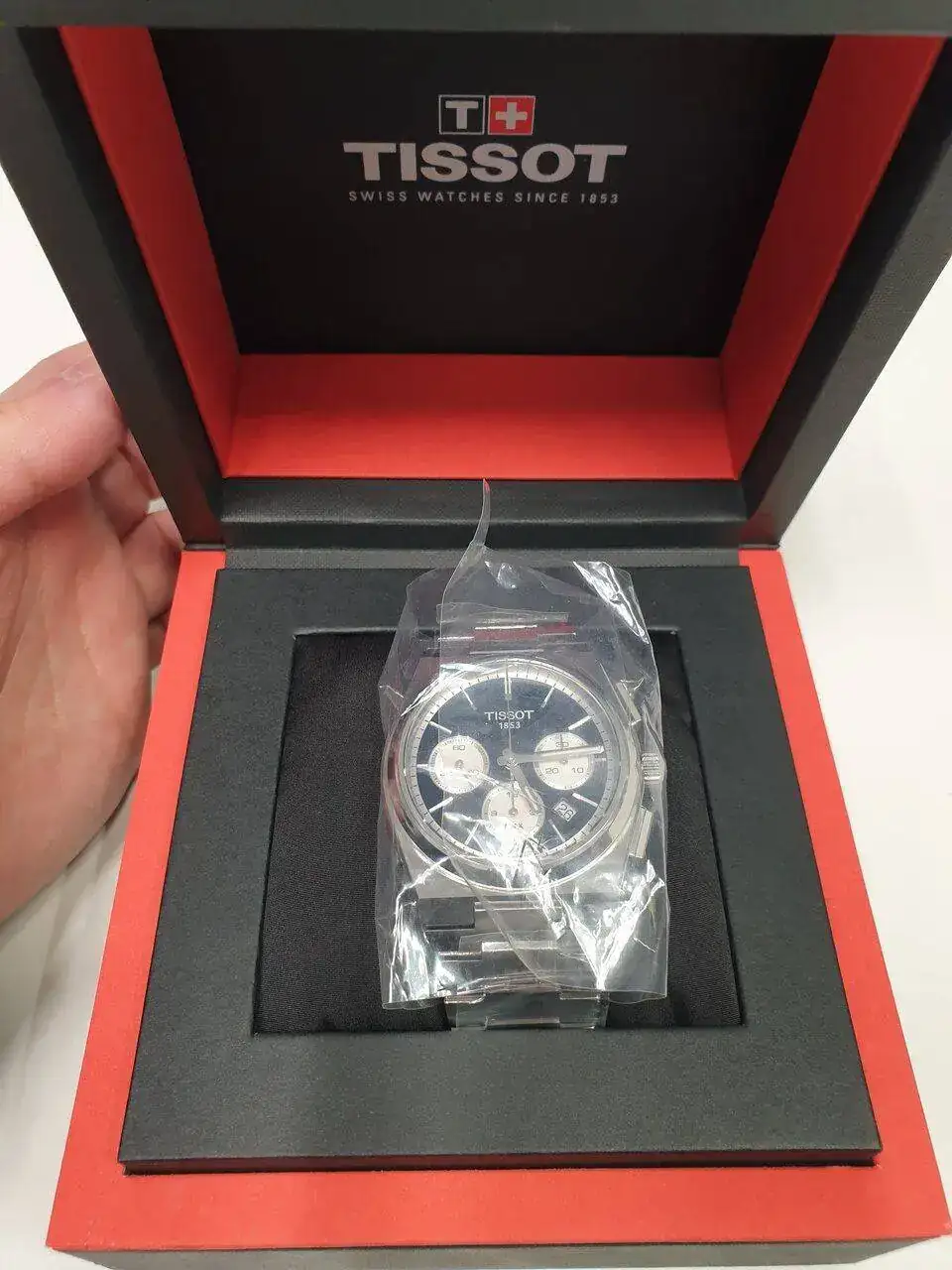 Estéticamente, ya en fotos y reviews me parecía un reloj tremendamente bonito pero, en vivo y en directo, gana muchísimo. La caja y el armis son enteramente satinados mientras que el bisel, los índices aplicados, las agujas y los laterales de los pulsadores del crono son pulidos a espejo. Creo que Tissot ha acertado de pleno con esta mezcla de superficies ya que el satinado recalca el carácter deportivo del reloj y el pulido a espejo resalta ese aroma vintage que tanto gusta de este modelo. Además, las partes pulidas logran que el juego de brillos cuando hay luz natural haga que el reloj sea incluso más bonito (esto es mera apreciación mía).