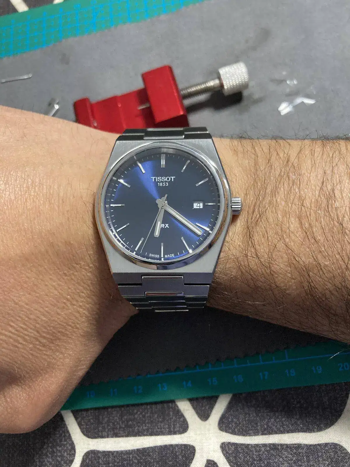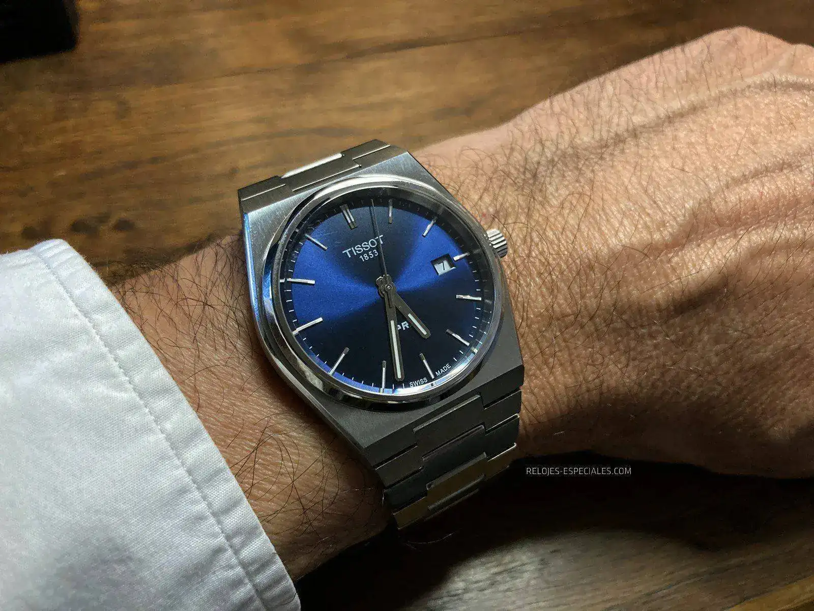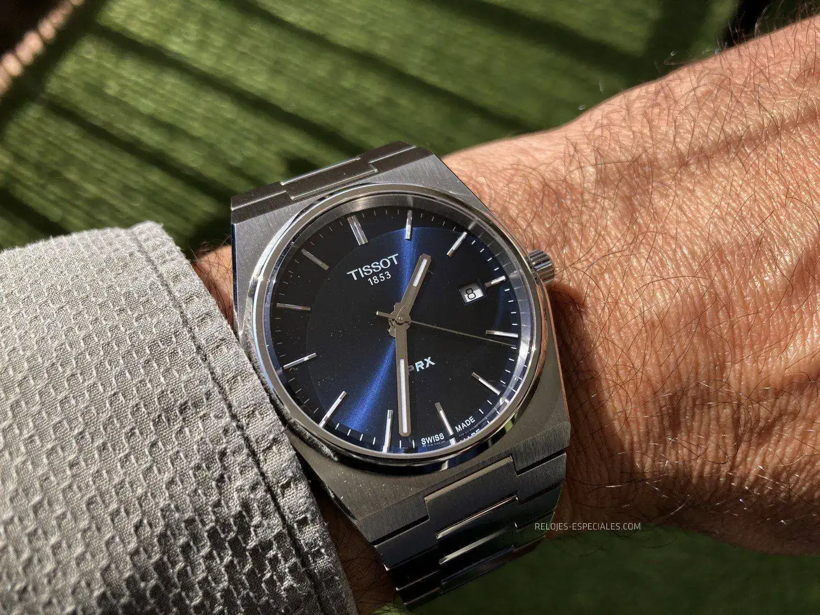 Con todo, lo que personalmente más agradezco de esa esfera es su parquedad: te dice la marca a las doce y sólo las tres letras del modelo -PRX- a las seis, sin literatura añadida e inútil. Esto lo conecta con su ancestro, y si hubieran podido evitar el 1853 debajo de Tissot ya lo hubieran bordado, en mi opinión.