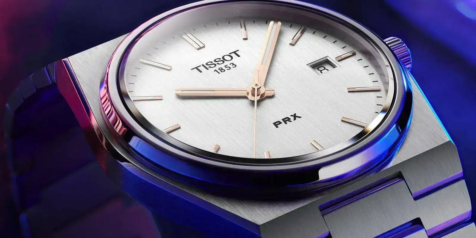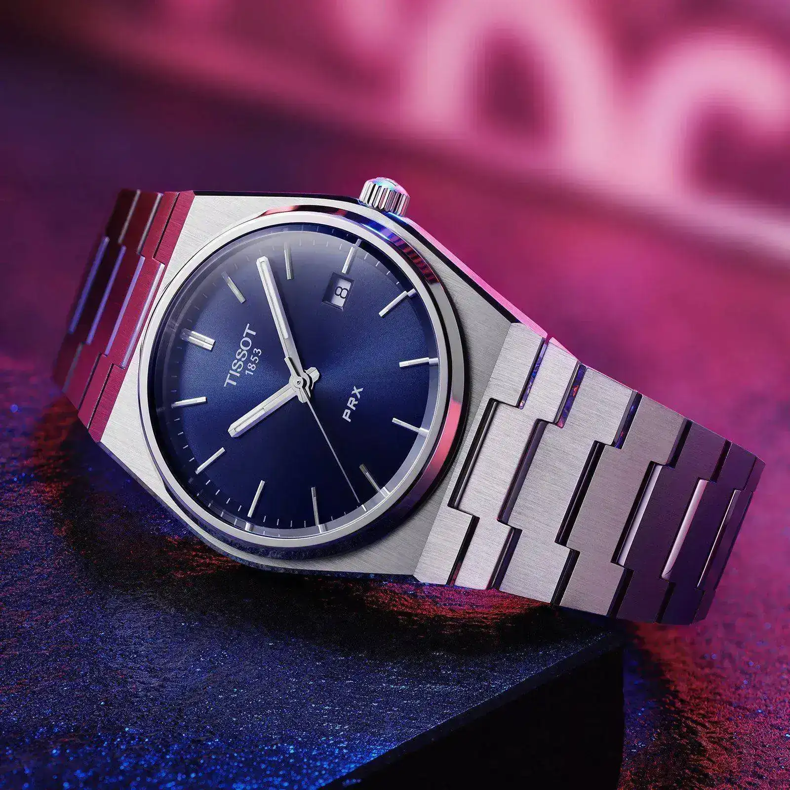En 1978, Tissot crea un modelo de cuarzo con una caja y unos índices finos y una pulsera de acero. Su ancho eslabón transversal, típico de los diseños de la época, se fusionaba perfectamente con la caja plana en forma de tonel. Unos años más tarde, Tissot patenta el nombre PRX. Las letras «PR» corresponden a «preciso» y «resistente». Por su parte, la «X» designaba, en números romanos, las diez atmósferas de profundidad que era capaz de resistir el reloj, hermético hasta 100 metros.