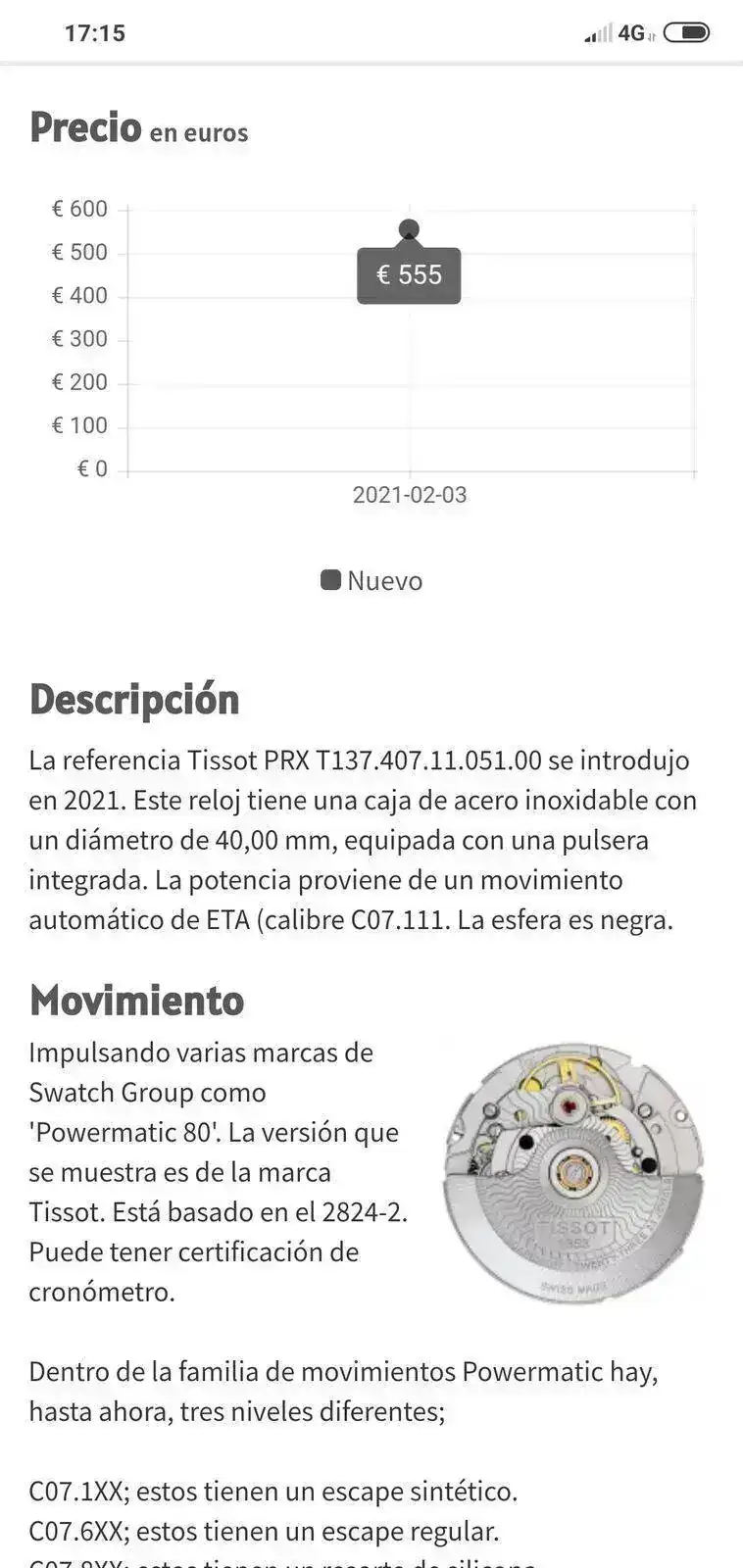 Con su correspondiente descuento, será una opción a tener en cuenta. Gracias.El cuarzo creo que anda por 355, mientras que el Auto que saldrá más adelante, sobre los 850
