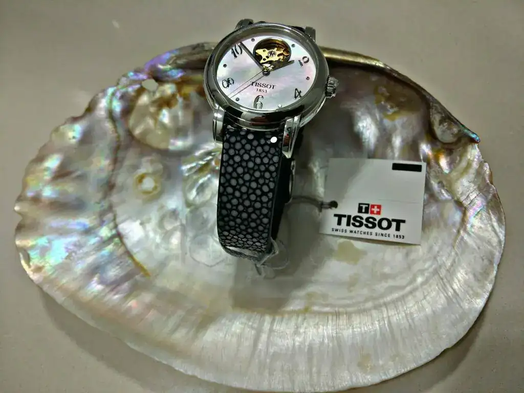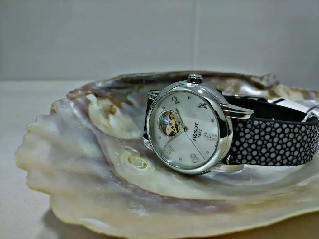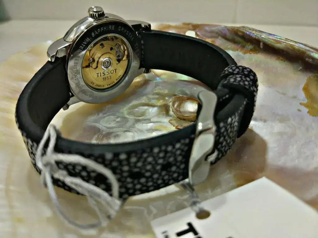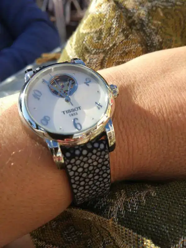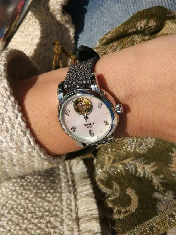 Quería mostraros el resultado final de un reloj tissot para mujer, que ha sido completamente restaurado y al que se le ha añadido una correa de Jacobo, en piel de manta raya.
