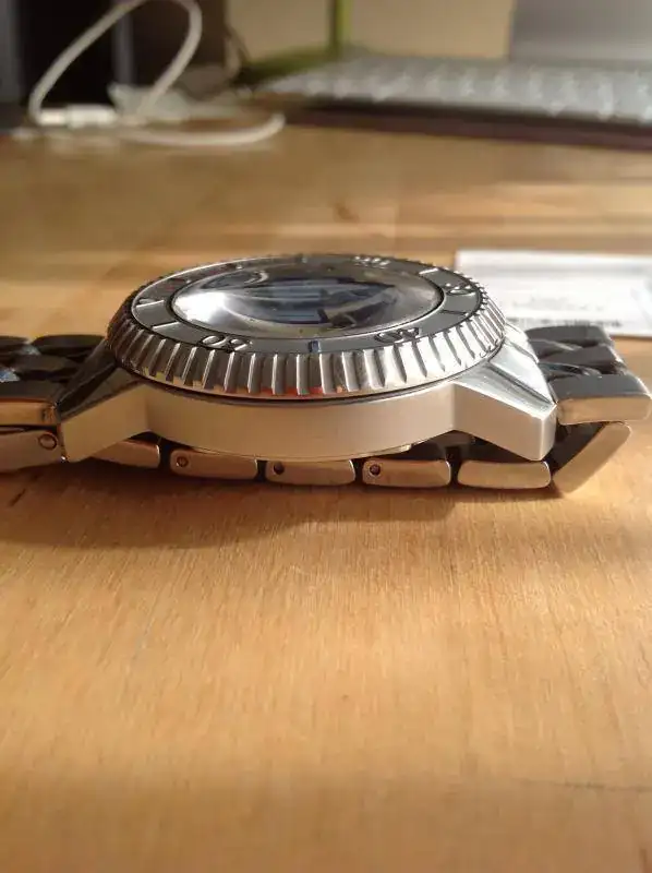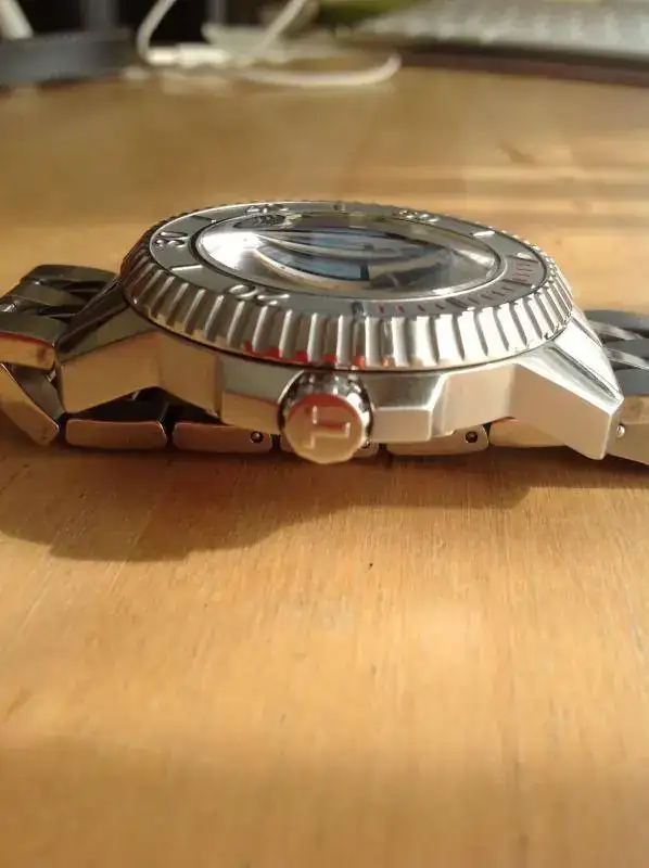 El bisel era azul, pero es típico en este modelo que el bisel perdiera la pintura asi que decidí dejarlo tal cual se puede ver en la foto, esta indudablemente usado pero no maltratado no tiene golpes a señalar, el cristal esta perfecto.