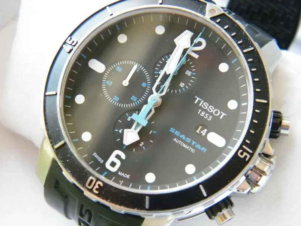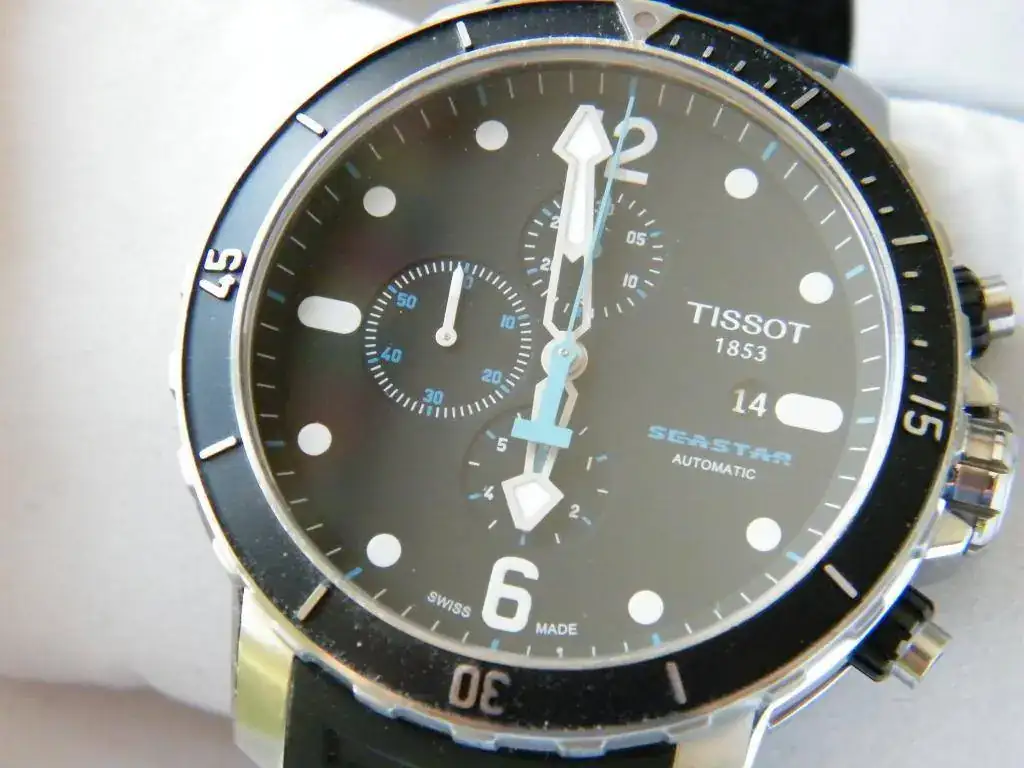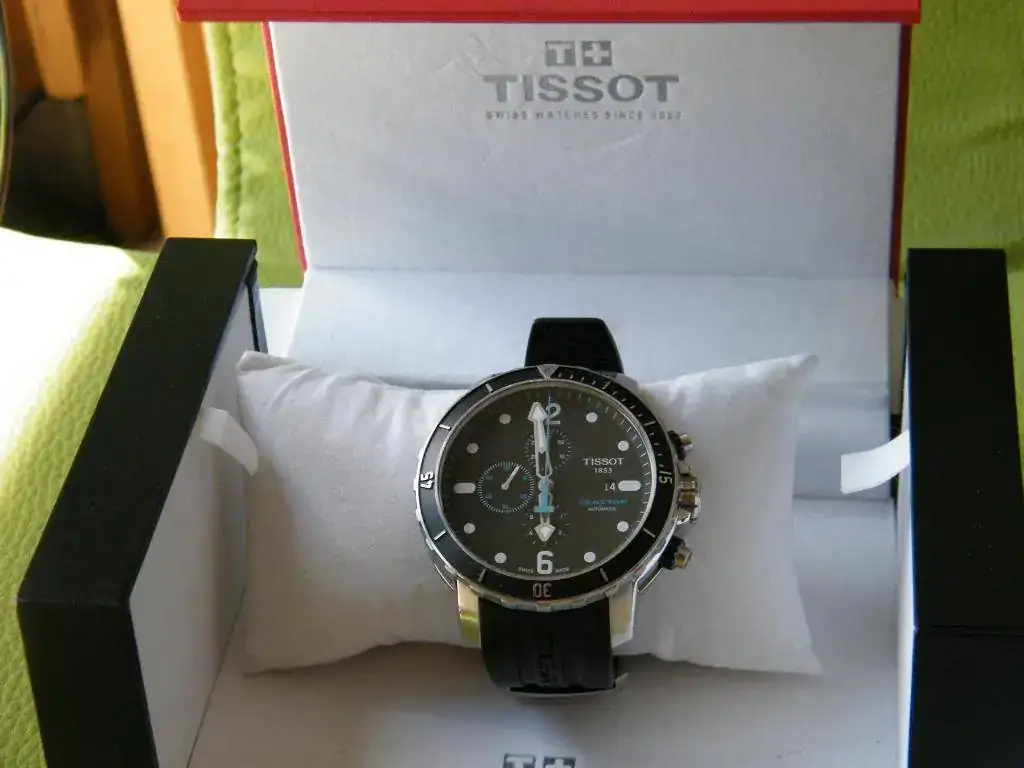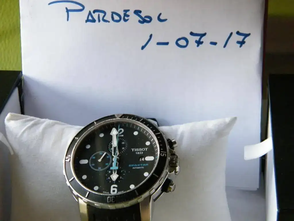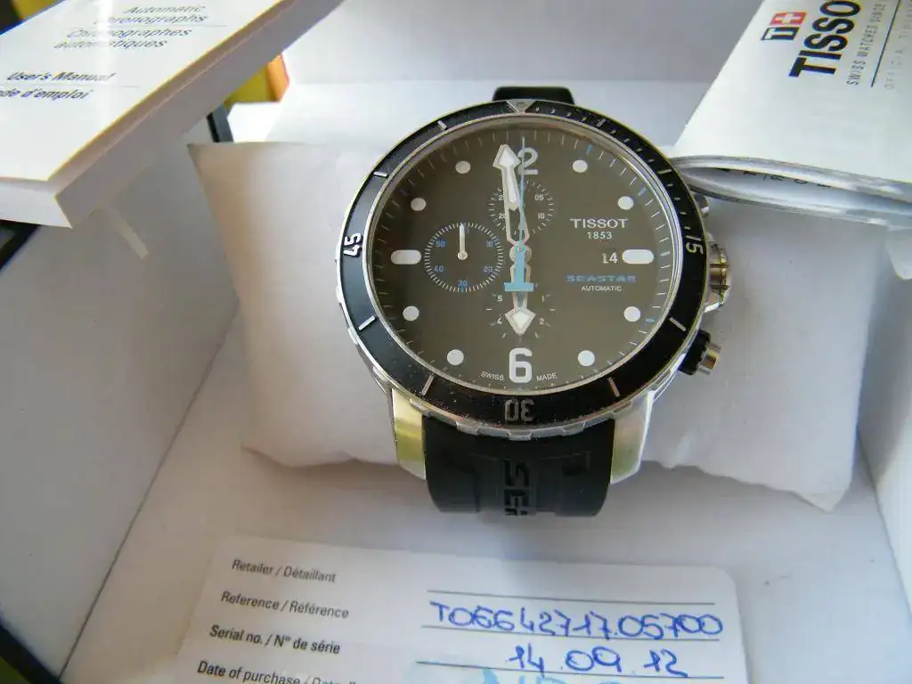 Pongo en venta este contundente Tissot, se trata del modelo Seastar 1000, cronógrafo automático y sumergible 300m. Su tamaño de 48 mm no deja a nadie indiferente. Comprado en 2012 su estado es bueno con las señales normales de un uso moderado y cuidadoso, tal y como se ve en las imágenes.