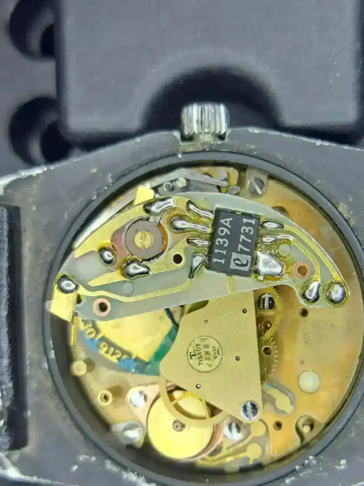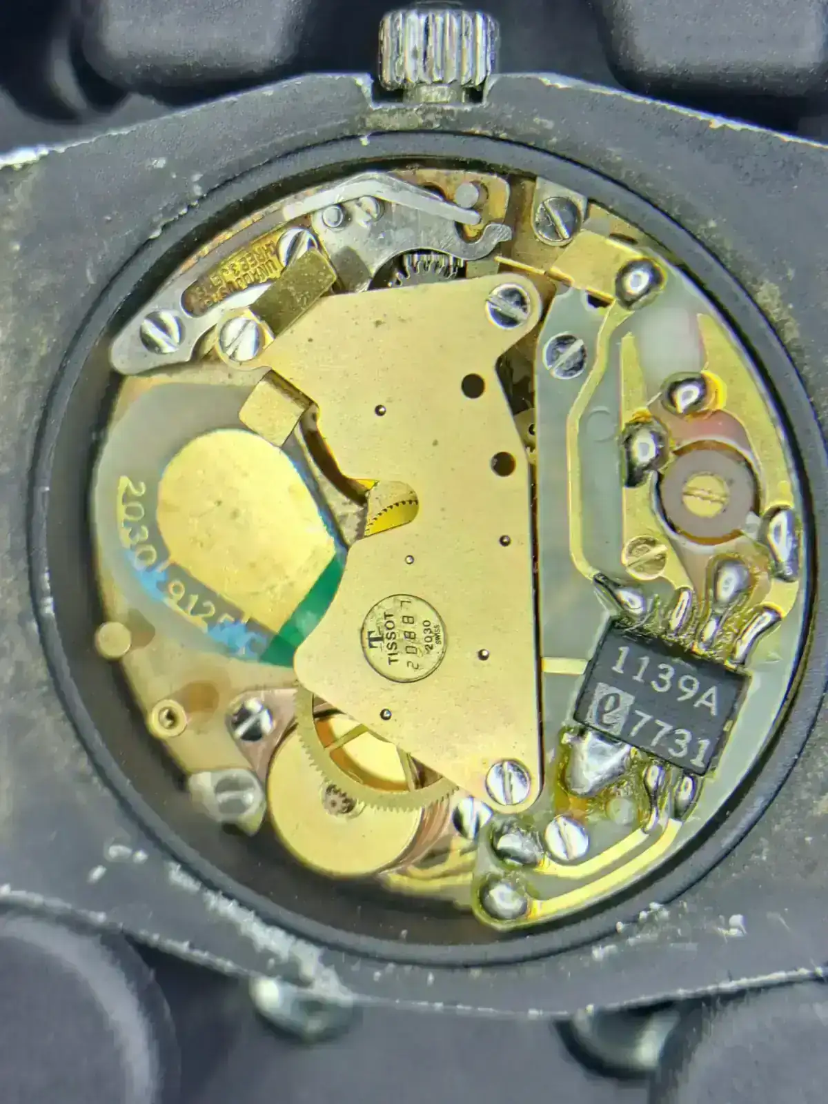 Lleva un calibre Tissot 2030, un desarrollo en casa de finales de los 70 que tuvo una vida bastante corta. Por lo que he leído no tiene piezas de demasiada calidad y es propenso a fallar por usar aleaciones blandas.