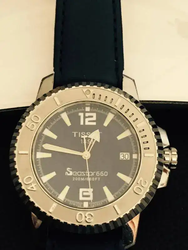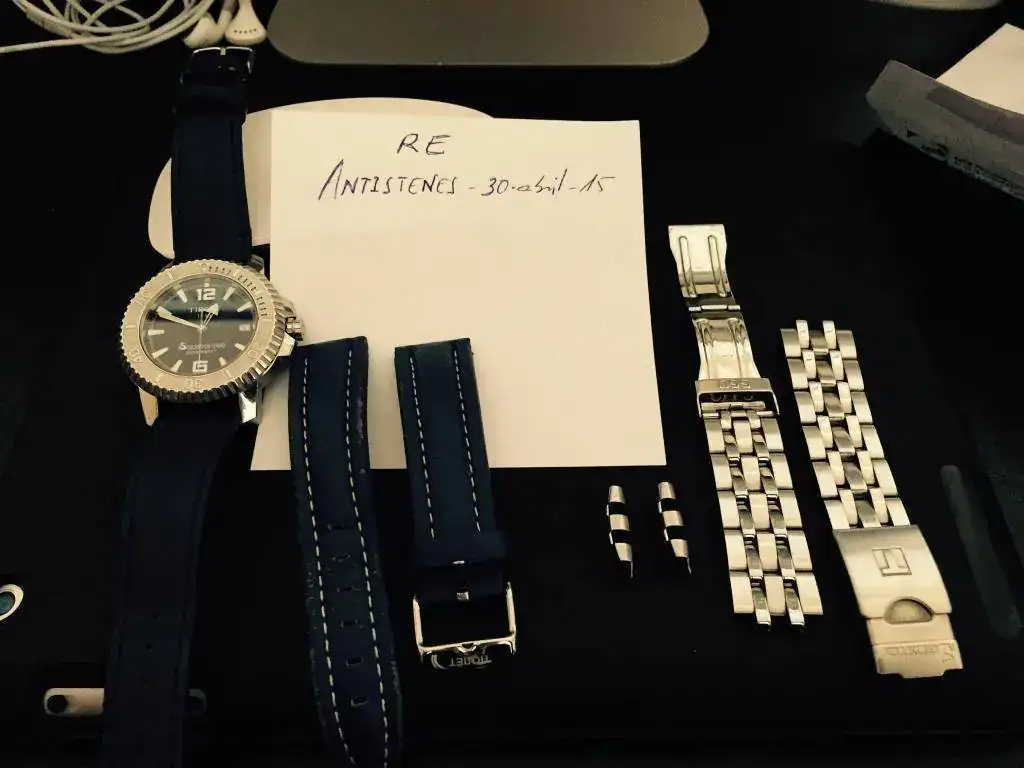 Vendo el Tissot Seastar 660 azul, con bisel de acero, sin nada apreciable en el cristal y mínimos roces por el acero.Va con una Morellato Azul con bastante uso por delante más otra azul Nonet (o algo así) más machacada para trote playero y tirar luego, más armas usado (se nota) y de regalo una de las dos nato que pongo en las fotos.