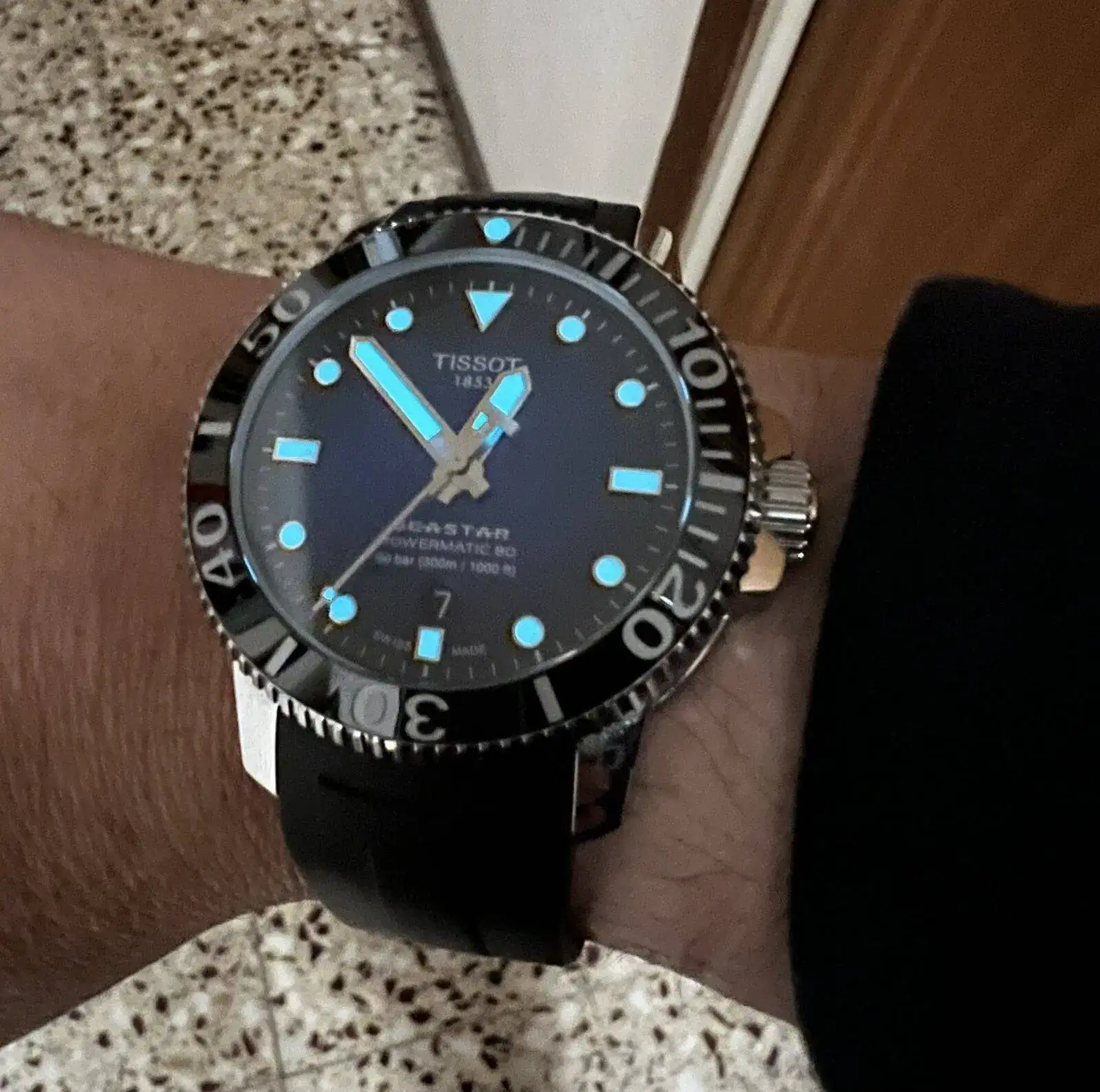 Tissot apuesta fuerte por Seastar. Cuando uno hace un producto redondo ("no pun intended") no tiene que dar demasiadas explicaciones, y al Tissot Seastar de cuarzo (36 mm) o automático con Powermatic 80 (46 mm) no le hace falta añadir mucho más. Sólo que la diferencia de precio entre los automáticos obedece al tratamiento PVD negro de la caja.
