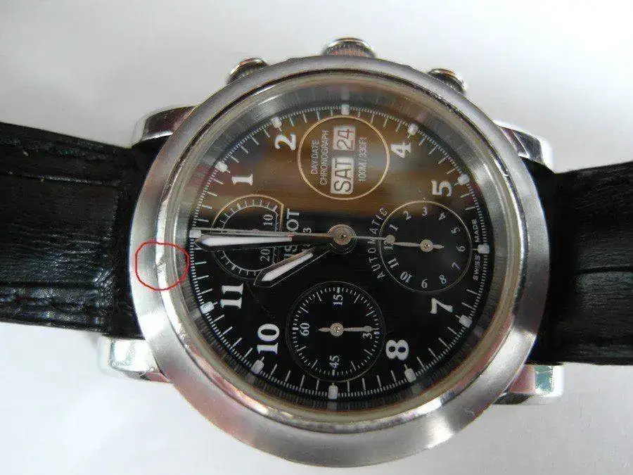 El cristal esta inpoluto no asi el bisel pequeño que rodea el cristal ese esta bastante dañado de roces destaco en la foto el golpe mas serio que tiene debe de ser un material bastante blando por que solo con mirarlo se deforma o se raya, el resto un golpe en la caja que aunque no sale bien en la foto esta hay lo demas co un pulido se quita.