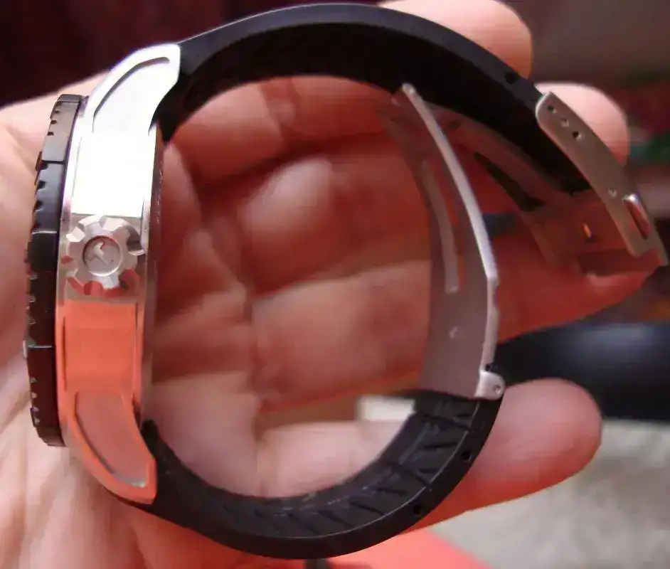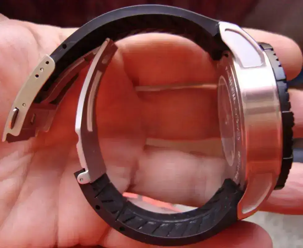 Material del brazalete: De caucho cortado para muñecas de 17,50 cms incluso un poco mas debido al juego que da el cierre.