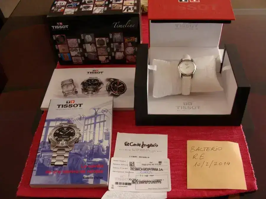 Hola a tod@s! Pongo en venta este Tissot T-Wave en color blanco para mujer, esfera color perla en un estado impoluto, la verdad es que jamás se ha usado, en su día fue un regalo y ahí se quedó, así que quien lo compre lo estrena. Aún está en garantía vigente por lo que se adjunta ticket del Corte Inglés y tarjeta sellada, igualmente se adjunta lo que se ve en la foto: caja, libros, folletos, vamos todo lo que traía cuando se compró.